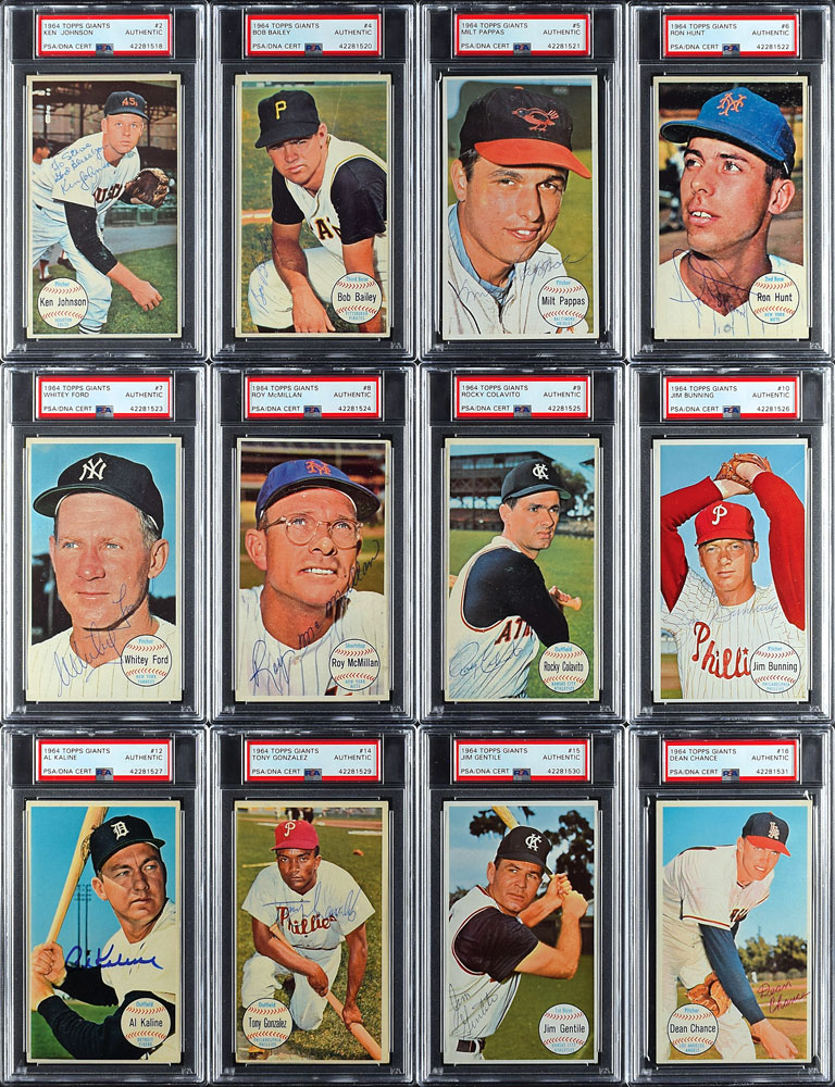 Total of 60 cards, and one of the nicest complete sets of authenticated 1964 Topps Giants cards ever offered.