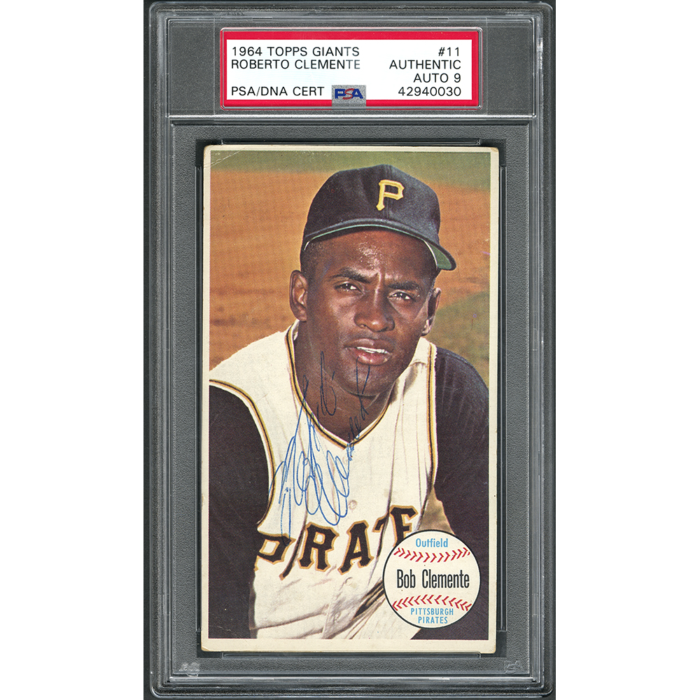 Each card within the set has been authenticated and encapsulated by PSA/DNA, with the Clemente card graded at the stunning MINT 9 level by PSA/DNA.