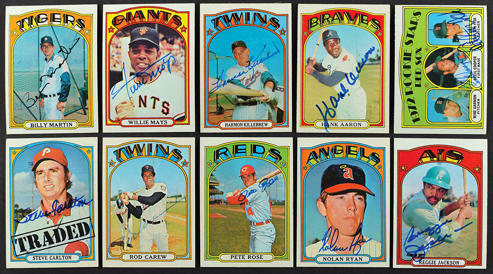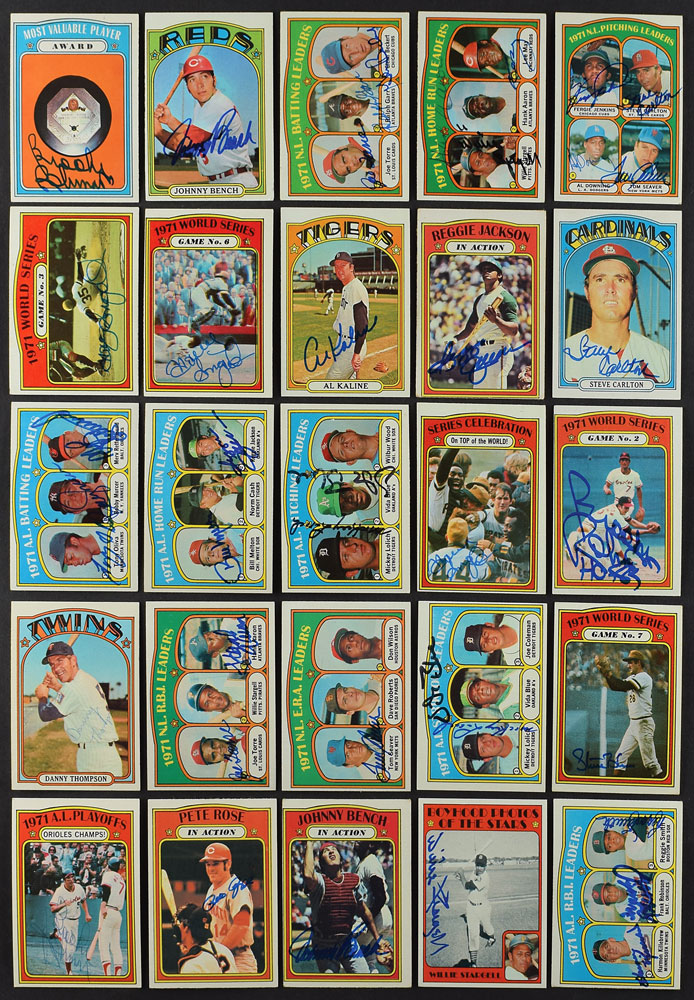 Offered is a near autographed set of 1972 Topps baseball cards, assembled and held for decades by an advanced autograph collector. The total amount of signed cards is 725 with a total of 825 signatures.