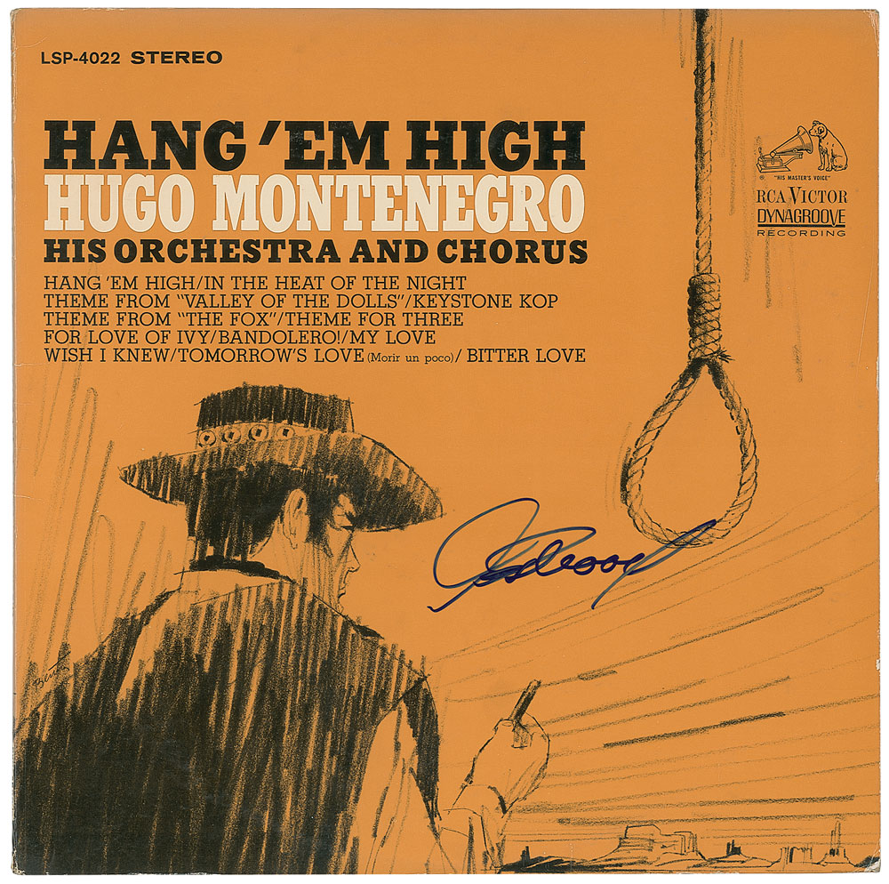 Hang 'Em High soundtrack album signed on the front cover in blue felt tip by Clint Eastwood. In fine condition. The record is included. From The John Brennan In-person Autograph Collection.