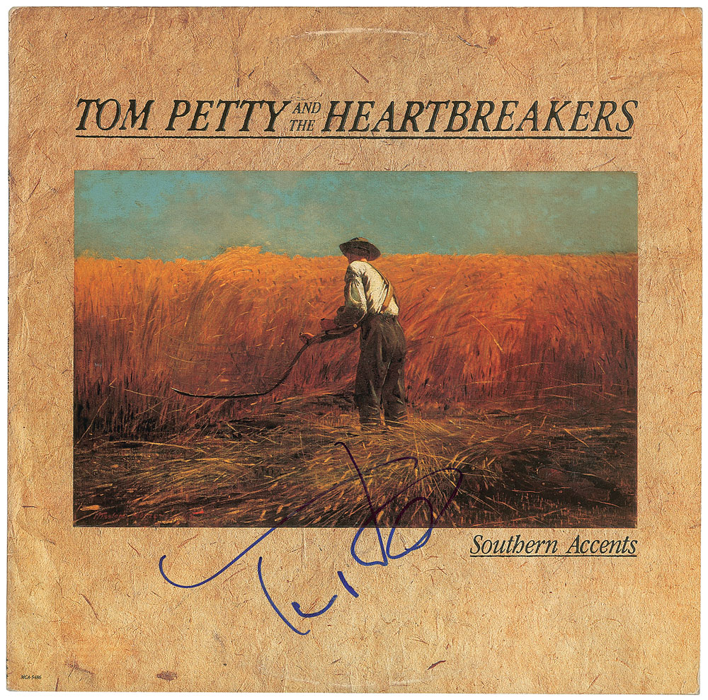 Southern Accents album signed on the front cover in blue felt tip by Tom Petty. In fine condition. The record is included. From The John Brennan In-person Autograph Collection.