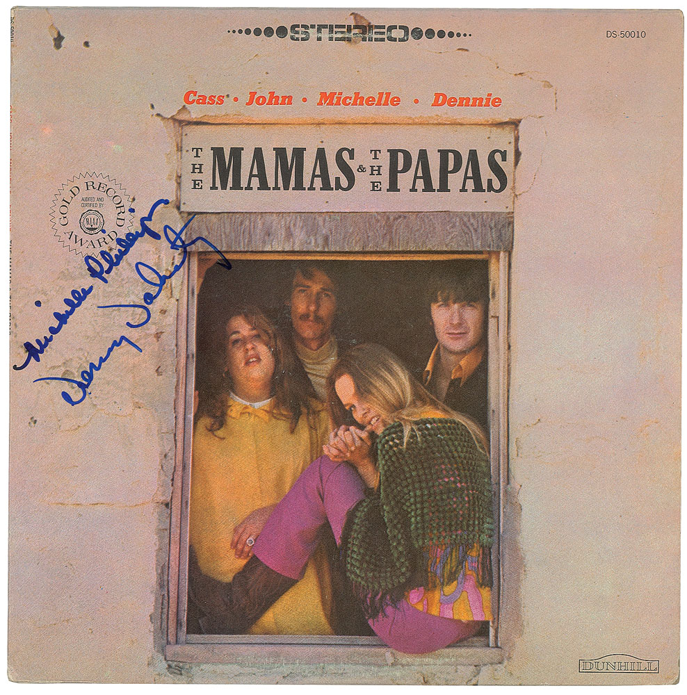 The Mamas & the Papas album signed on the front cover in blue felt tip by Denny Doherty and Michelle Phillips. In fine condition, with old price sticker residue. The record is included. From The John Brennan In-person Autograph Collection.