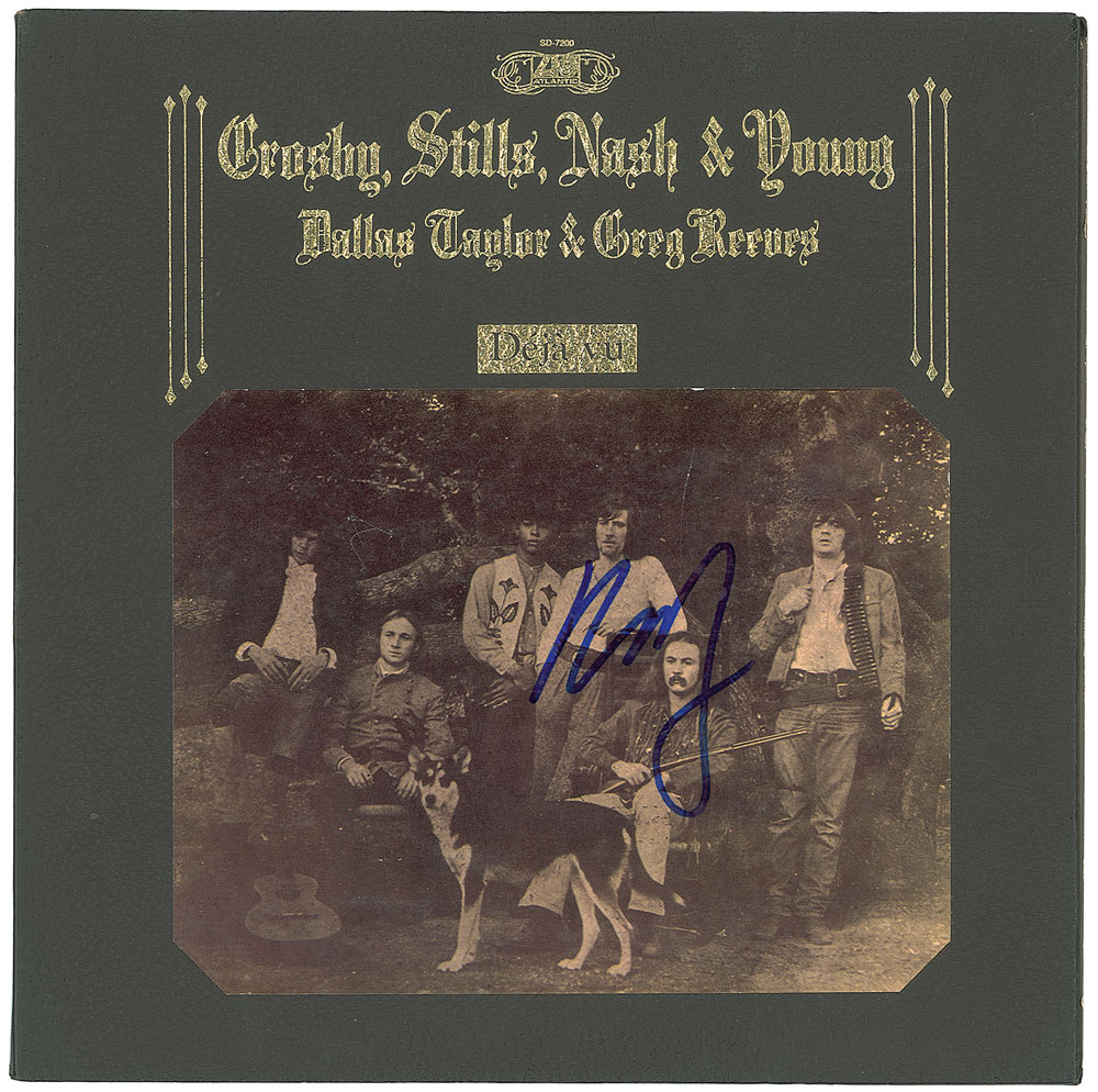 Déjà Vu album signed on the front cover in blue felt tip by Neil Young. In fine condition. The record is included. From The John Brennan In-person Autograph Collection.