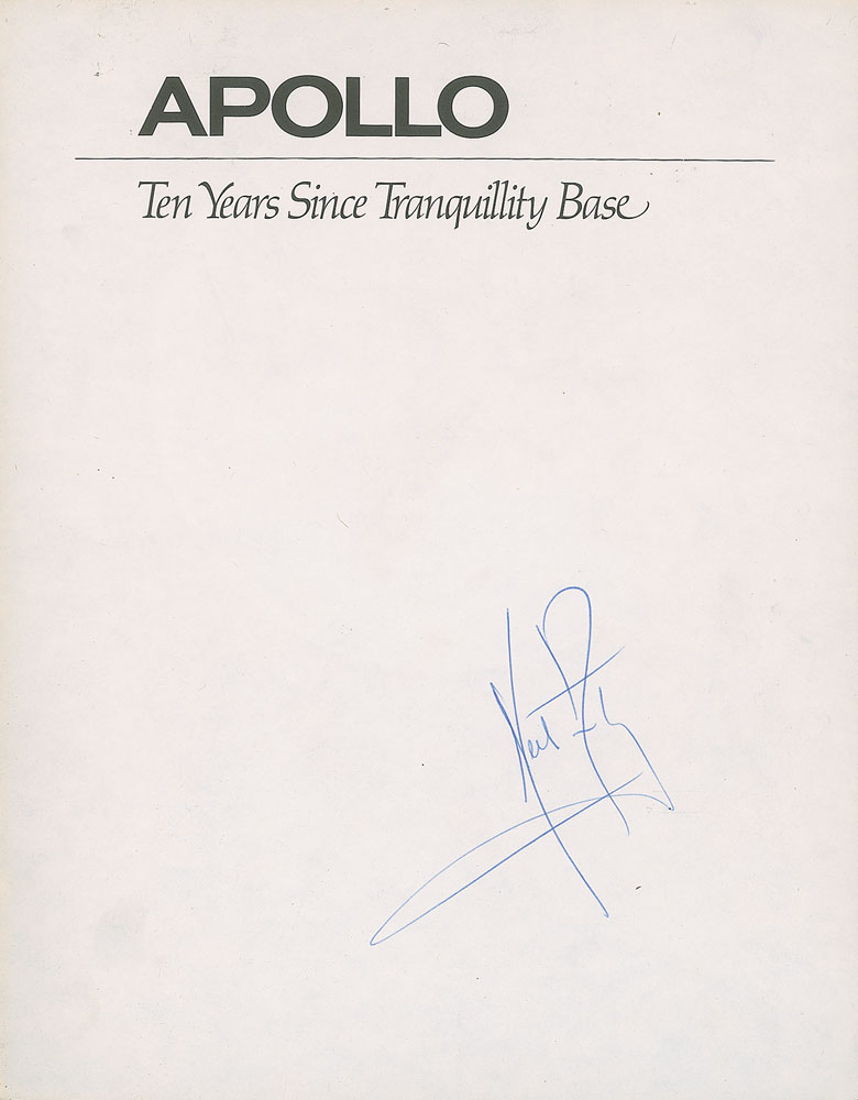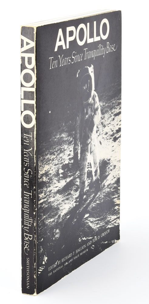 Sought-after signed book: Apollo: Ten Years Since Tranquility Base. Washington, D.C.: National Air and Space Museum, 1979. Softcover, 8 x 10, 174 pages. Signed nicely on the half-title page in blue ballpoint by Neil Armstrong. In fine condition, with light cover wear.