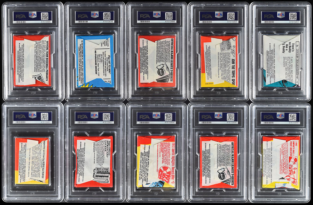 Total of 10 HIGH GRADE PSA graded Topps wax packs.