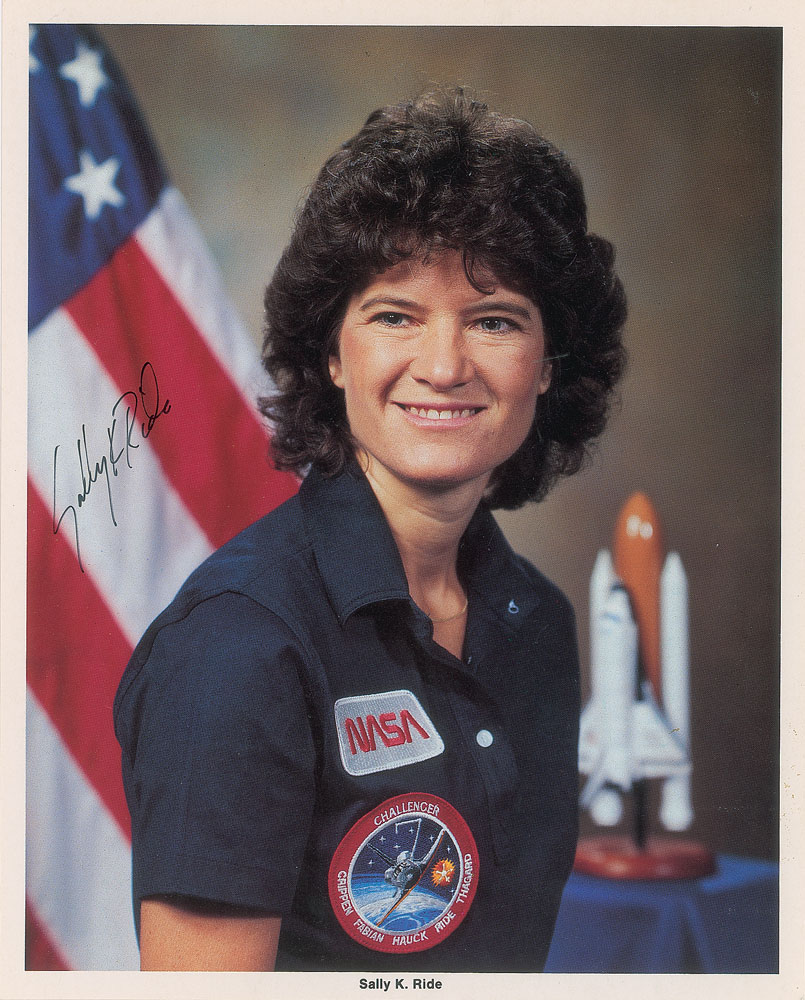 Two official color 8 x 10 NASA lithographs of Space Shuttle astronauts Sally Ride and Vance Brand, individually signed in black felt tip by the pictured astronaut: "Sally K. Ride" and "Vance Brand." In overall very fine condition.
