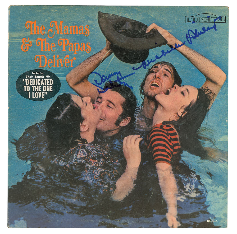 The Mamas & the Papas Deliver album signed on the front cover in blue felt tip by Michelle Phillips and Denny Doherty. In fine condition. The record is included. From The John Brennan In-person Autograph Collection.