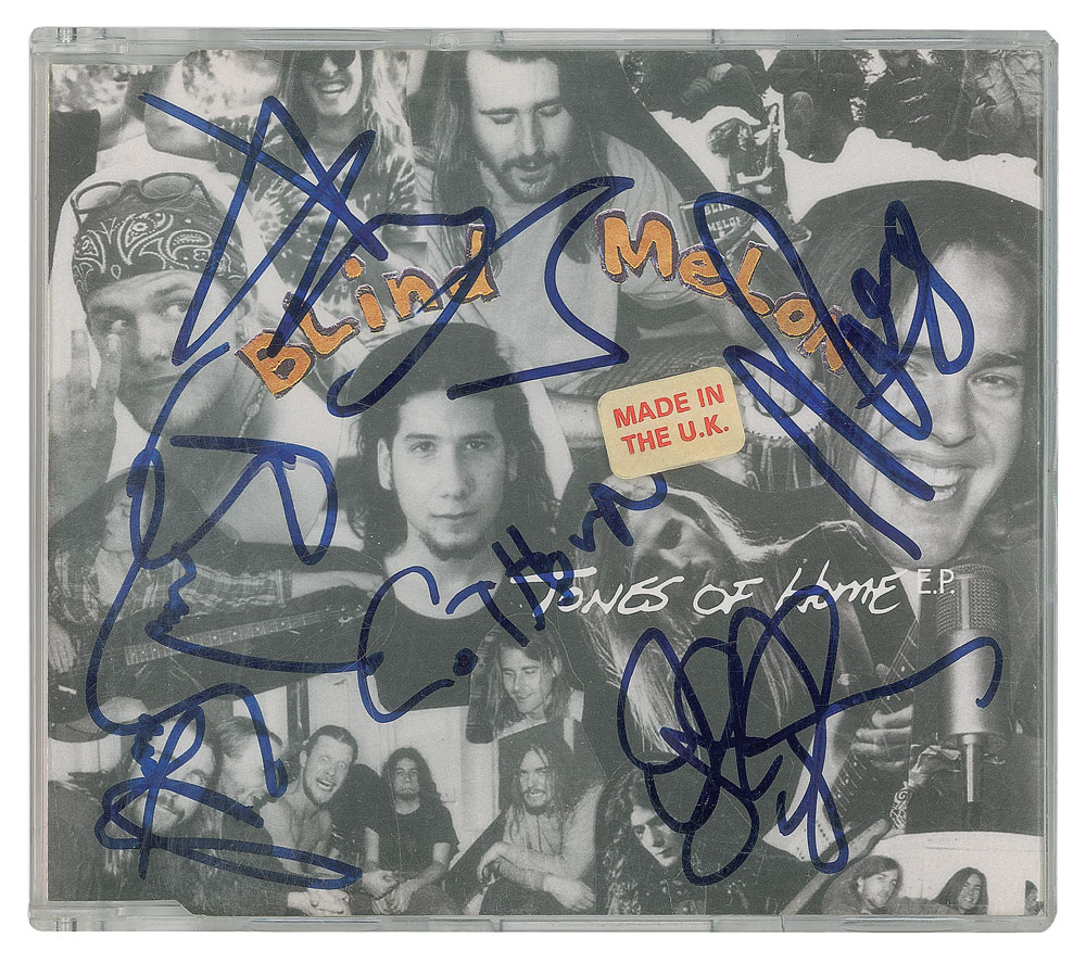 'Tones of Home' CD single signed on the front cover in blue felt tip by Rogers Stevens, Brad Smith, Christopher Thorn, Glen Graham, and Shannon Hoon. In fine condition. The CD is included. From The John Brennan In-person Autograph Collection.