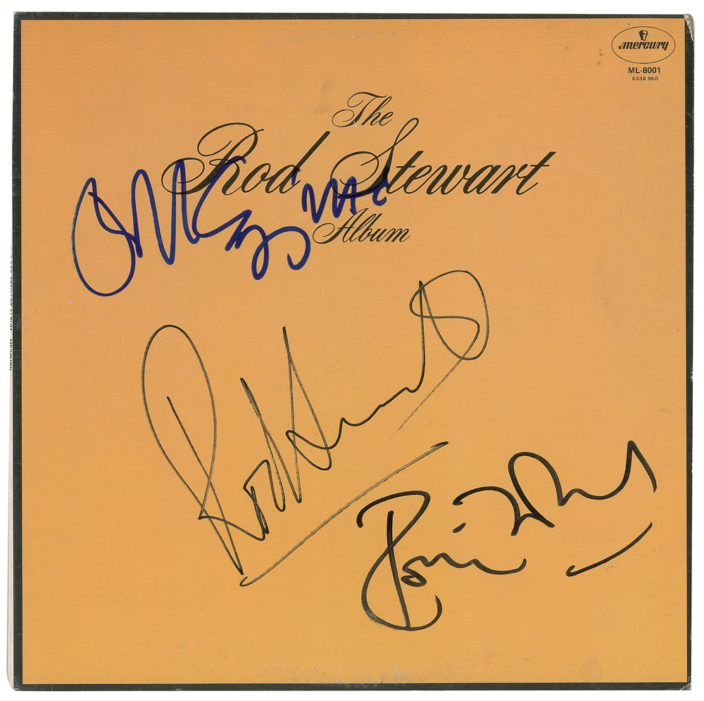 The Rod Stewart Album album signed on the front cover in blue felt tip by Ian McLagan, and in black felt tip by Rod Stewart and Ronnie Wood. In fine condition. The record is included. From The John Brennan In-person Autograph Collection.