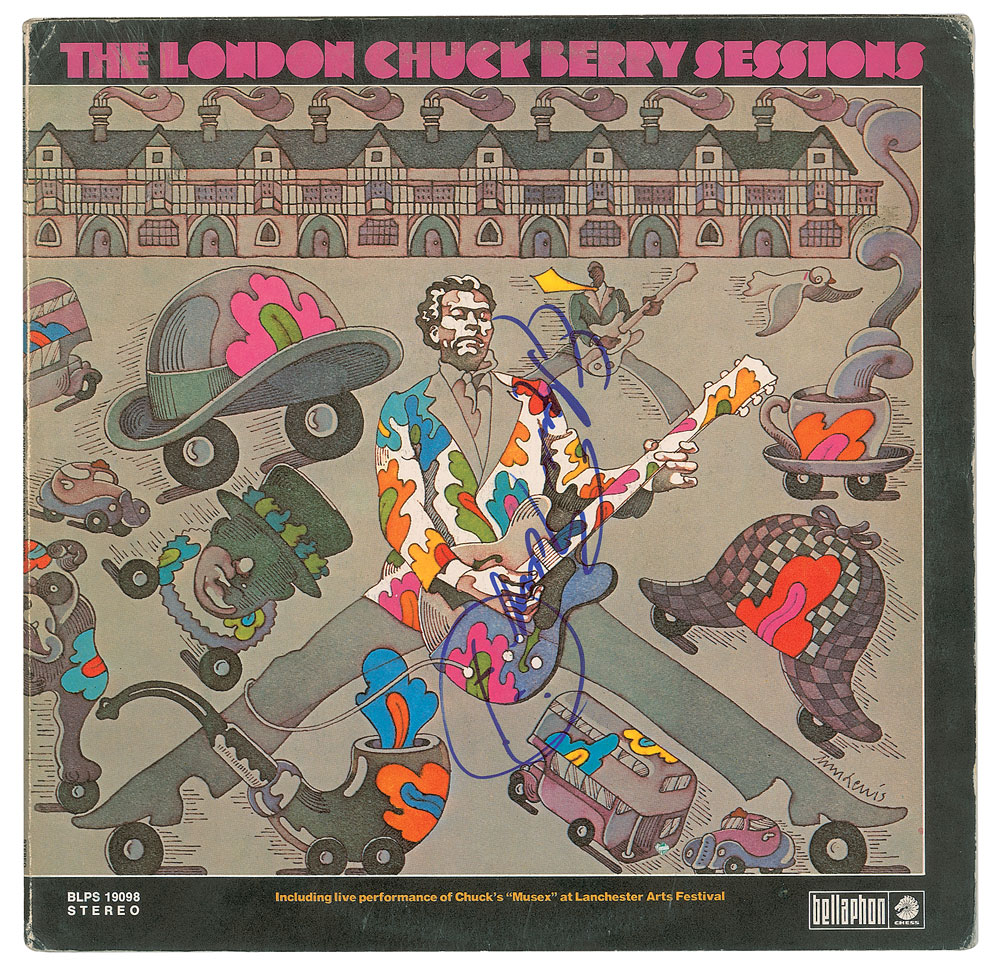 The London Chuck Berry Sessions album signed on the front cover in blue felt tip by Berry. In fine condition. The record is included. From The John Brennan In-person Autograph Collection.