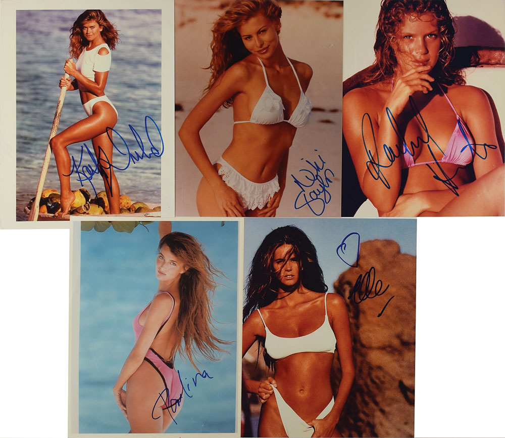 Group of five color 8 x 10 photos of supermodels, individually signed blue felt tip by Elle Macpherson, Kathy Ireland, Niki Taylor, Rachel Hunter, and Paulina Porizkova. In overall fine condition. Originally obtained by in-person specialist Mike Wehrmann.