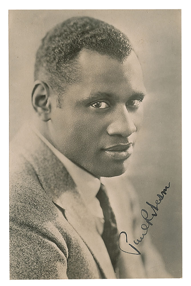 Vintage matte-finish 3.5 x 5.5 close-up photo of Robeson, boldly signed in fountain pen. In fine condition.