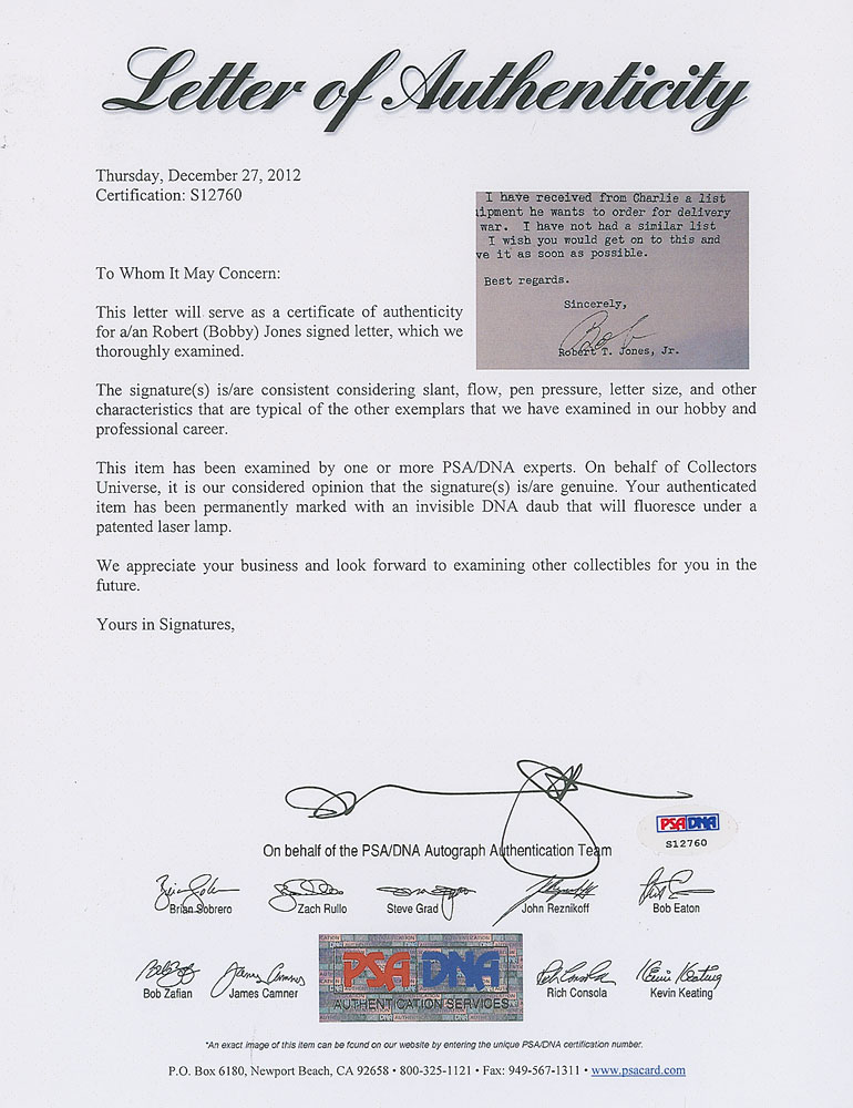 *This item has been pre-certified by a trusted third-party authentication service, and by placing a bid on this item, you agree to accept the opinion of this authentication service. If you wish to have an opinion rendered by a different authenticator of your choosing, you must do so prior to your placing of any bid. RR Auction is not responsible for differing opinions submitted 30 days after the date of the sale.