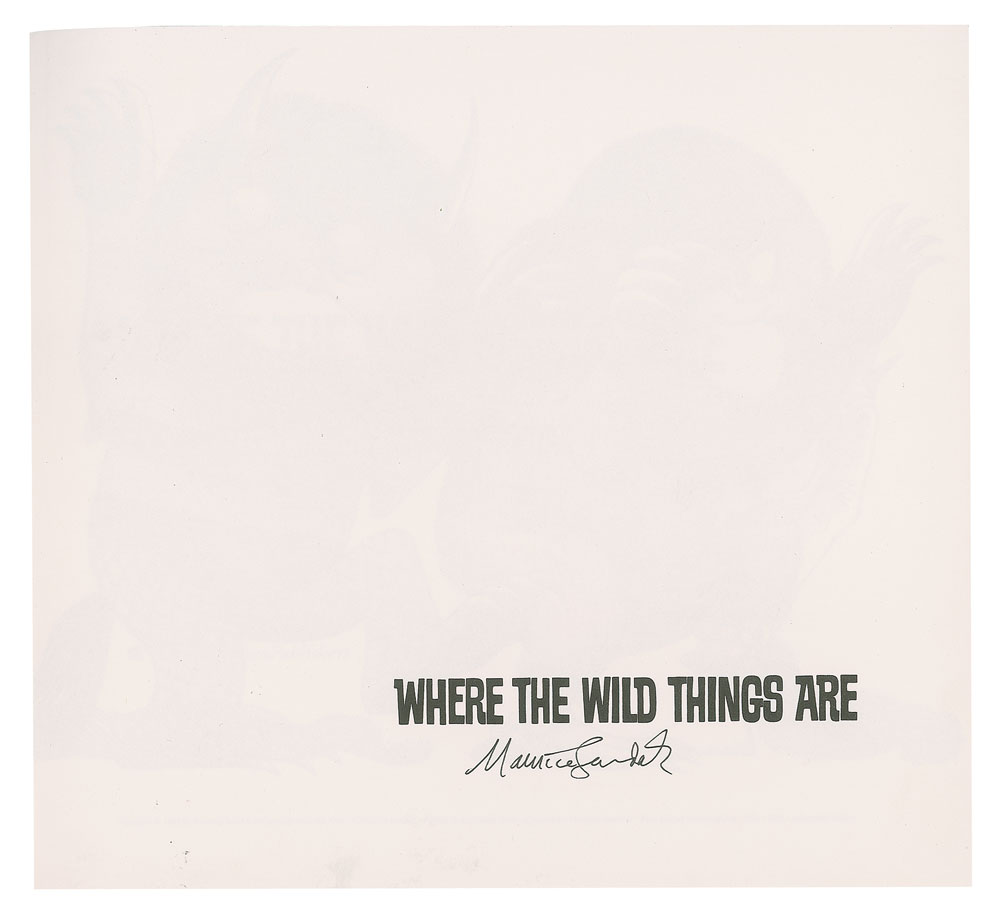 Signed book: Where the Wild Things Are. 25th Anniversary Edition. NY: HarperCollins, 1984. Hardcover with dust jacket, 10.25 x 9.25. Signed on the half-title page in black felt tip by Maurice Sendak. In fine condition, with bumped corners and a small tear and soiling to the rear panel of the dust jacket.