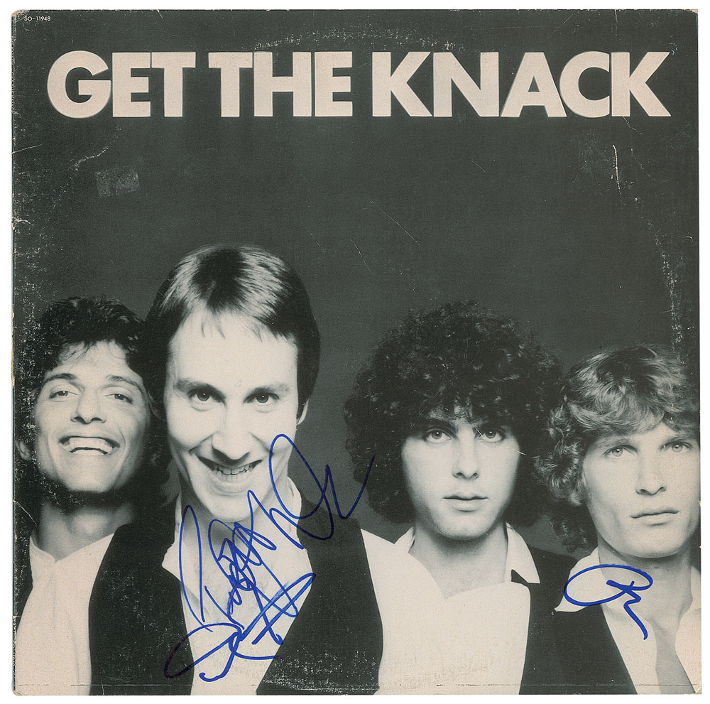 Get the Knack album signed on the front cover in blue felt tip by Berton Averre, Prescott Niles, and Doug Fieger. In very good to fine condition, with light scuffing and some old price sticker residue. The record is included. From The John Brennan In-person Autograph Collection.