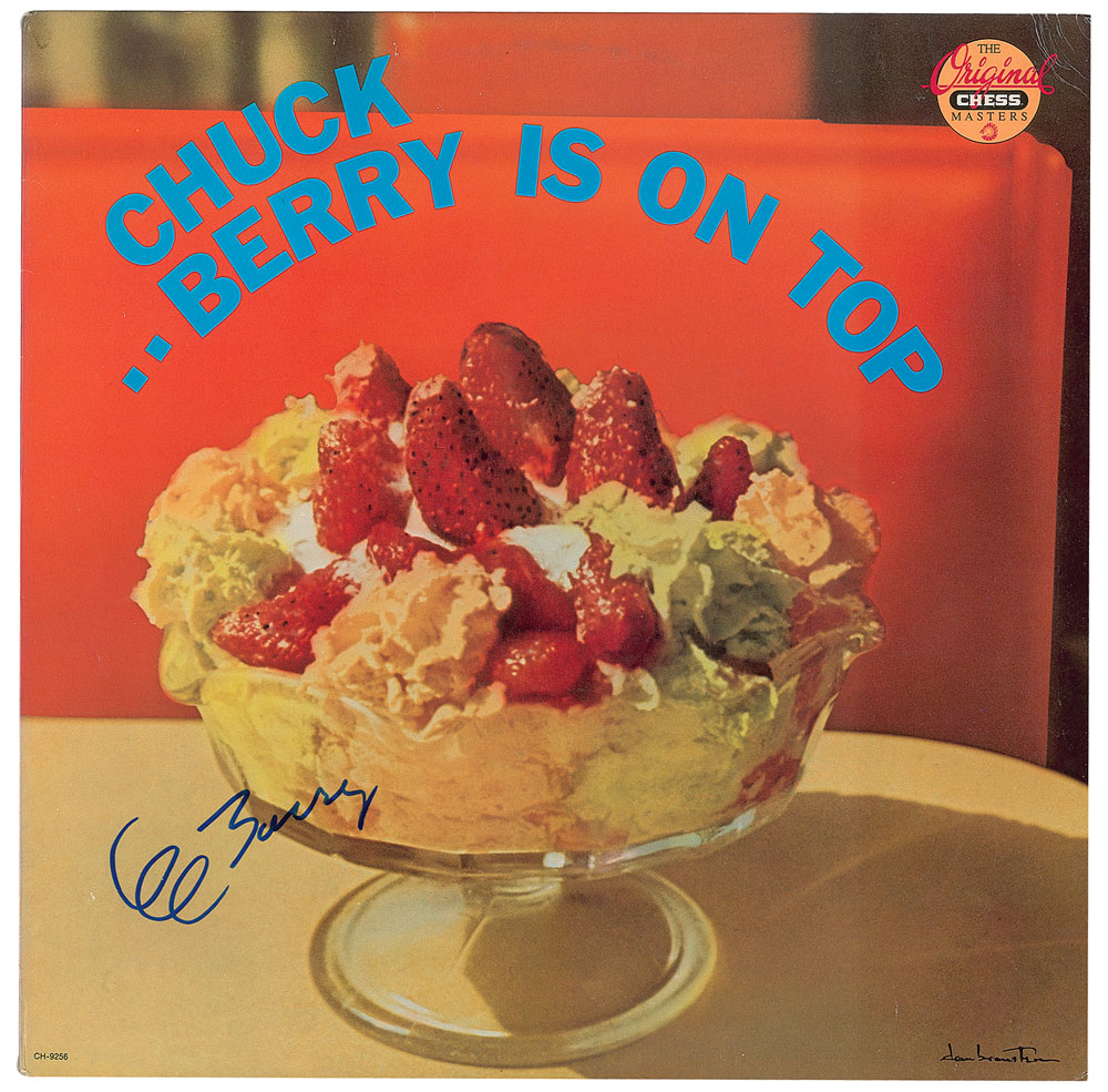 Chuck Berry Is On Top promotional album signed on the front cover in blue felt tip by Berry. In fine condition. The record is included. From The John Brennan In-person Autograph Collection.