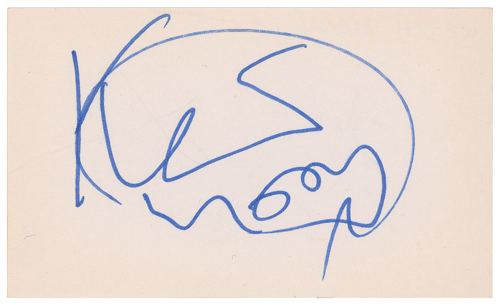 Large felt tip signature, "Keith Moon,” on an off-white 5 x 3 card. In very fine condition. Originally obtained in person by a New York autograph hound who collected from the 1950s through 2000s. A superlative example of the legendary drummer's autograph.