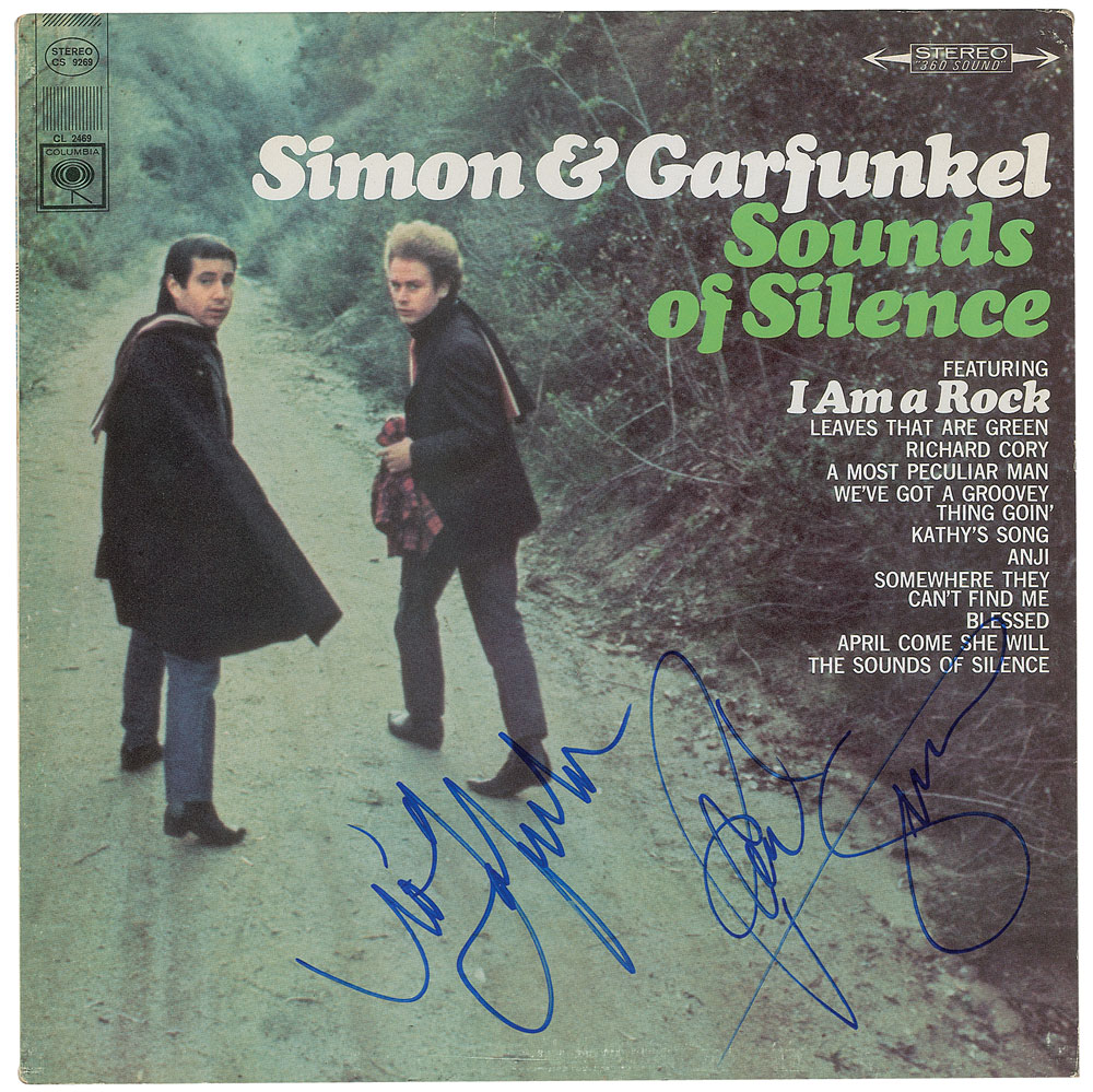 Sounds of Silence album signed on the front cover in blue felt tip by Paul Simon and Art Garfunkel. In fine condition. The record is not included. From The John Brennan In-person Autograph Collection.