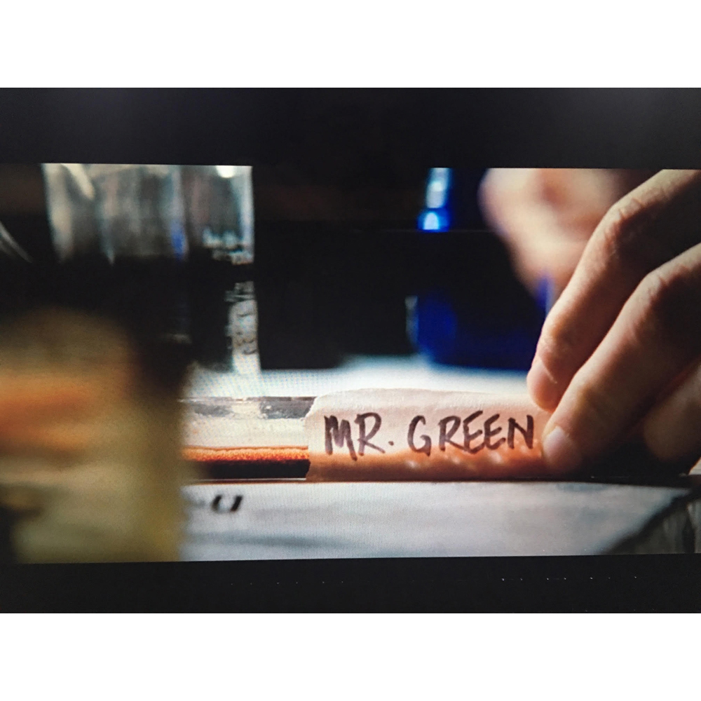 Collection of screen-used props from the blockbuster 2008 Marvel Studios superhero film The Incredible Hulk. These items were handled by actor Edward Norton as Bruce Banner during a scene in which the doctor, in his quest to find a cure for his gamma-irradiated curse, takes a sample of his own blood and sends vials of it to ‘Mr. Blue,’ cellular biologist Dr. Samuel Sterns, who is played by actor Tim Blake Nelson. The items include: a plastic tube or vial, 6.25″ in length, filled with red faux blood and the outside bearing a tape strip marked: “Mr. Green”; a pair of syringes, both approximately 6.5″ in length, one real and the other a ‘safety’ version, with the real version featuring a coil of plastic tubing; and a pair of cardboard show boxes wrapped in brown paper, 11.75 x 6.5 x 4, both featuring address labels marked: “Mr. Blue, P. O. Box 35627, N.Y. NY 10026, USA.” Both boxes and the vial feature affixed labels from Propworx. In overall very good to fine condition, with tearing to the end of one box. The lot is accompanied by a certificate of authenticity from Propworx.