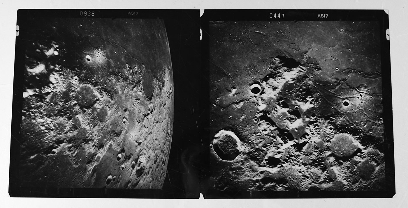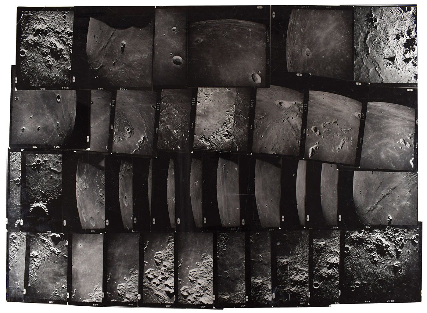 Collection of 38 vintage second-generation glossy 10 x 10 silver gelatin photographs taken by the Metric Mapping Camera during Apollo 15, featuring a number of consecutive sequences taken across the lunar surface, and highlighted by a stereo pair of the Hadley Rille landing site. Also includes sunrise/sunset terminator sequences and stereo pairs. Includes several images of the Mare Serenitatis, Rima Hadley, Rimae Archimedes, Montes Caucasus, and craters 'Aristillus,' 'Timocharis,' 'Carlini,' 'Euler,' 'T. Mayer,' 'Brayley,' 'Prinz,' 'Schiaparelli,' and others. All but one frame (with trimmed borders) is identified in the border with its four-digit number and "AS15." In overall fine condition, with creasing to one image of the Hadley Rille and trimmed edges to another. Consignor notes that these photographs were acquired while working at the Manned Spacecraft Center from 1972-1974. These images were used by Planetary Scientists to not only help identify future landing sites, but also to understand the formation and evolution of the Moon.