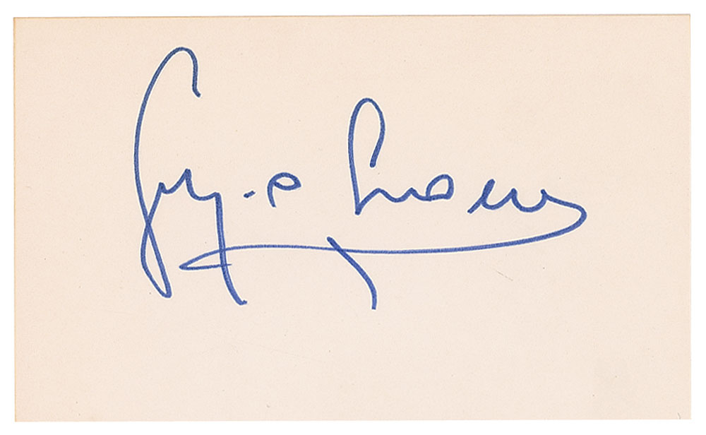 Felt tip signature, "Sergio Leone,” on an off-white 5 x 3 card. In very fine condition. Originally obtained in person by a New York autograph collector who collected from the 1950s through the 2000s.