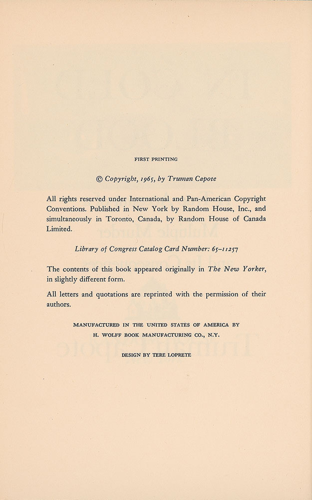 Signed first edition of Capote's true crime classic