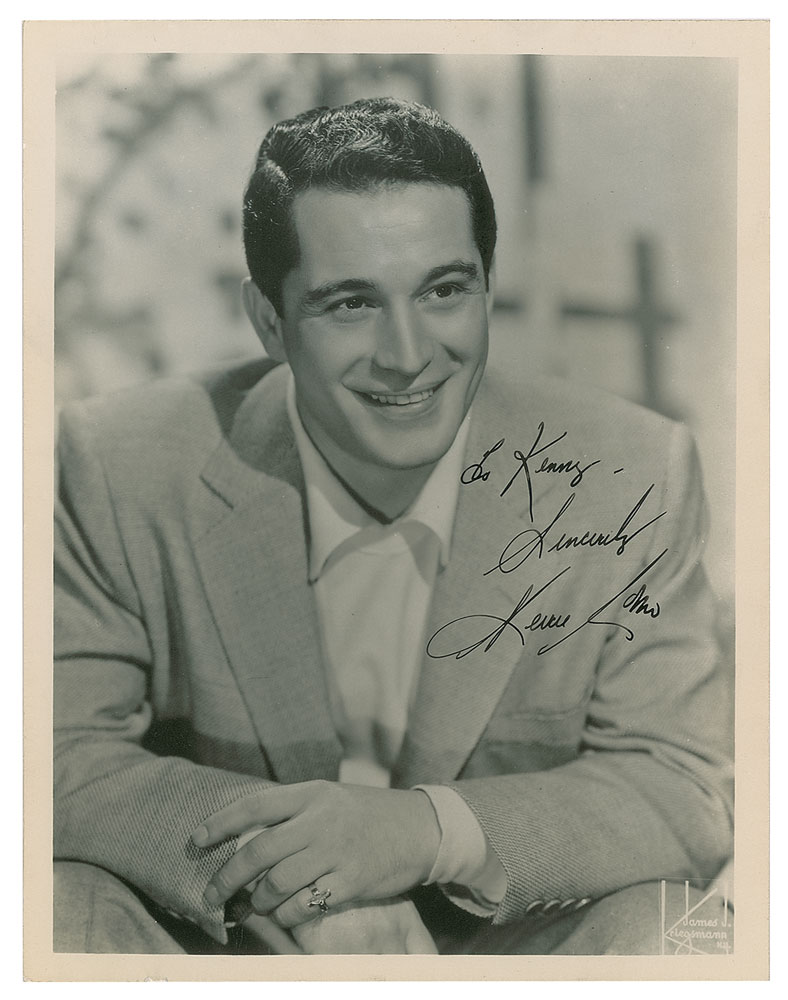 Vintage matte-finish 7.75 x 10 photo of the award-winning entertainer as a young man, originally taken by the James J. Kriegsmann Studio of New York, signed and inscribed in fountain pen, "To Kenny—Sincerely, Perry Como.” In fine condition.