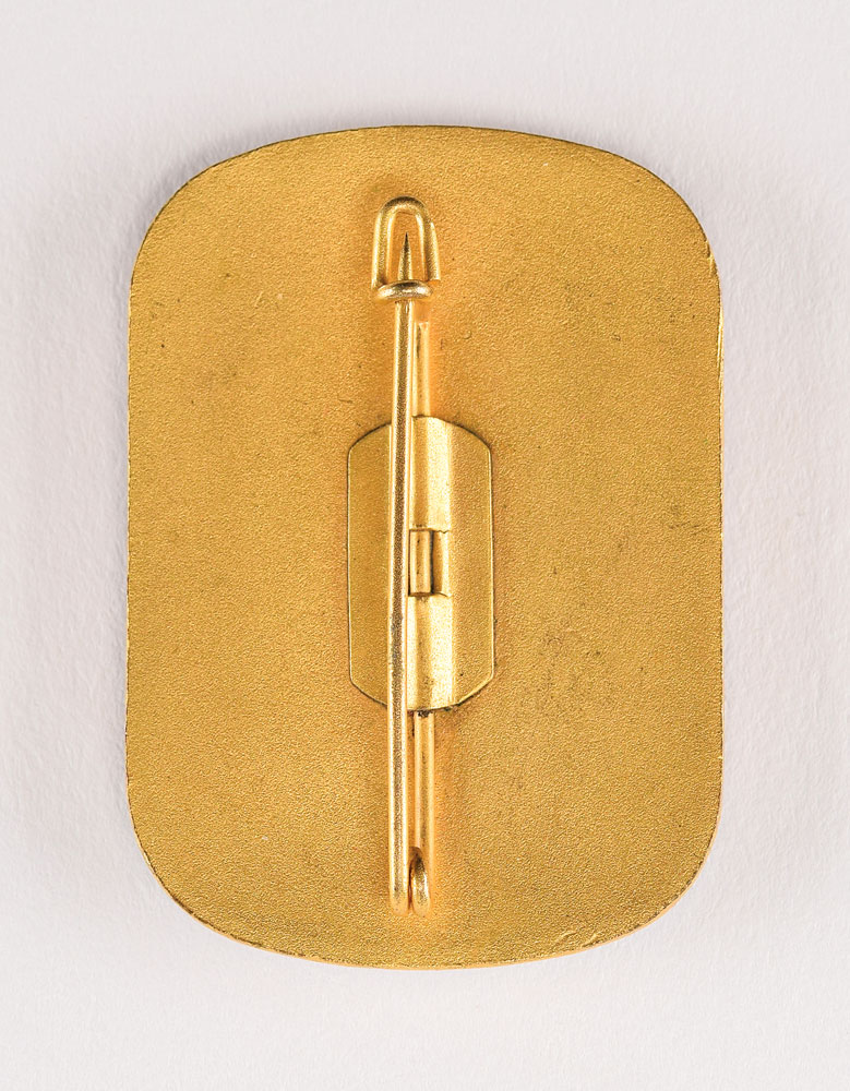 Desirable 'Guest of Honor' badge from the Innsbruck 1964 Winter Olympics, measuring 29 mm x 42 mm, featuring the emblem of the 1964 Winter Games set in white enamel against a dark blue background. Retains the pin on the reverse. This 'Guest of Honor' badge represents one of 23 different designs made for the Innsbruck Olympiad; of the 12,000 total badges produced, only 500 were the 'Guest of Honor' type.