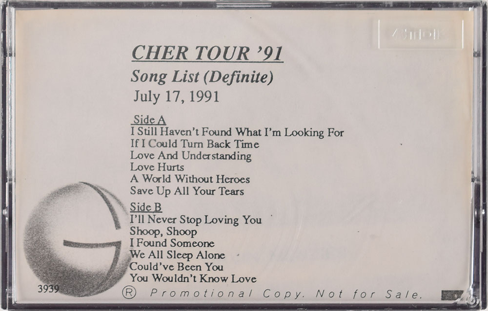 Cher Setlist Tape for 1991 Tour