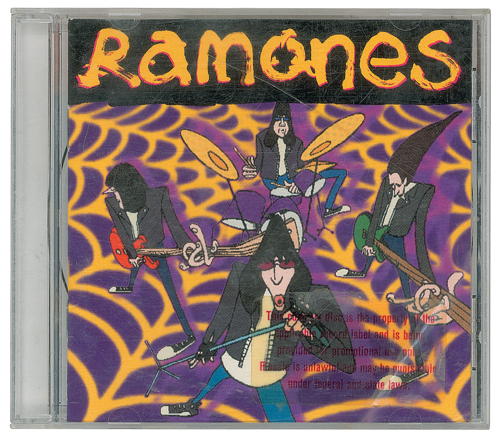 Greatest Hits Live promotional CD by the Ramones, signed on the disc in black felt tip by Johnny, CJ, Marky, and Joey Ramone. In fine condition, with a cracked jewel case.