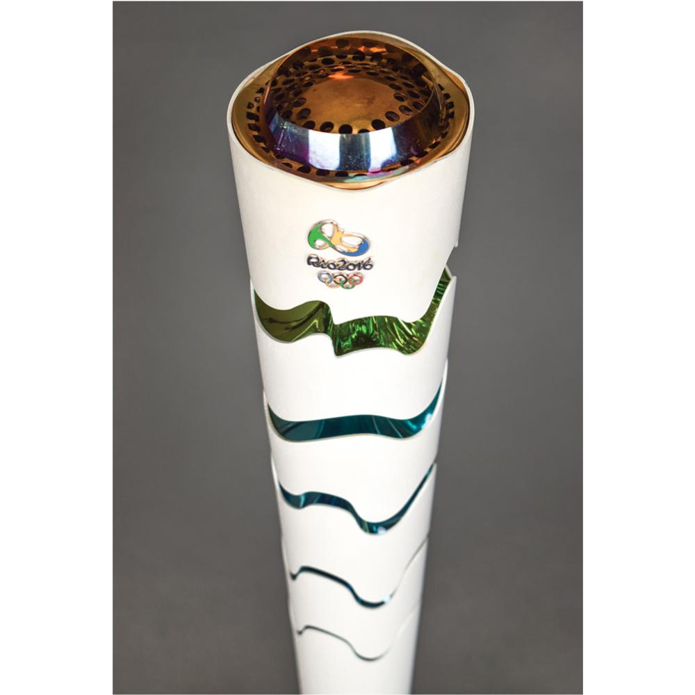 The torch relay began in Olympia on April 21, and concluded on August 5 at Maracanã Stadium in Rio de Janeiro, after visiting over three hundred of Brazil’s towns and cities. A record number of countries participated in the Rio Games, including first time entrants Kosovo and South Sudan. Ten thousand and nine hundred athletes participated in 306 medal events in 45 sports disciplines. A rare opportunity to own a relay torch from the most recent summer games.