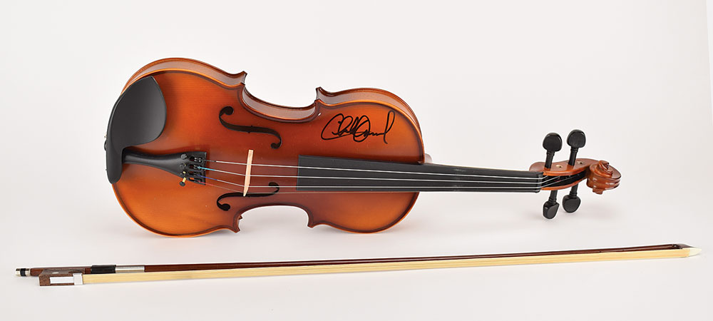 Attractive fiddle signed on the upper bout in black felt tip by Charlie Daniels. In very fine condition. Accompanied by a bow and Ohuhu carrying case.