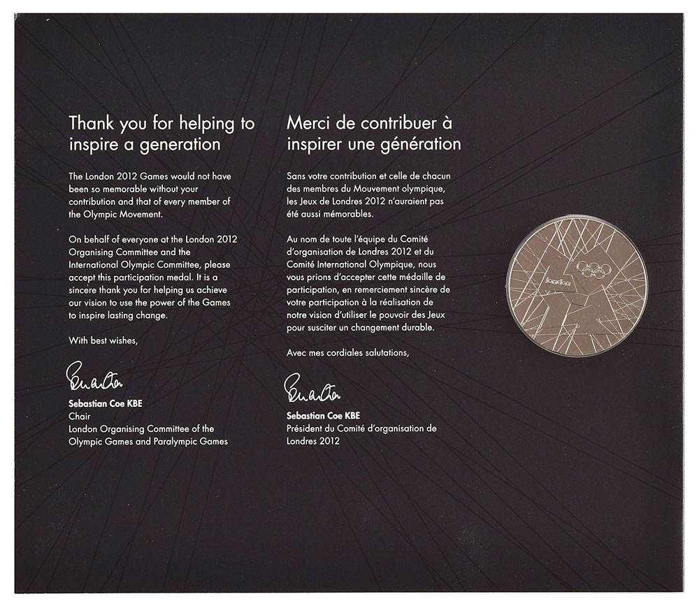 London 2012 Summer Olympics Cupronickel Participation Medal