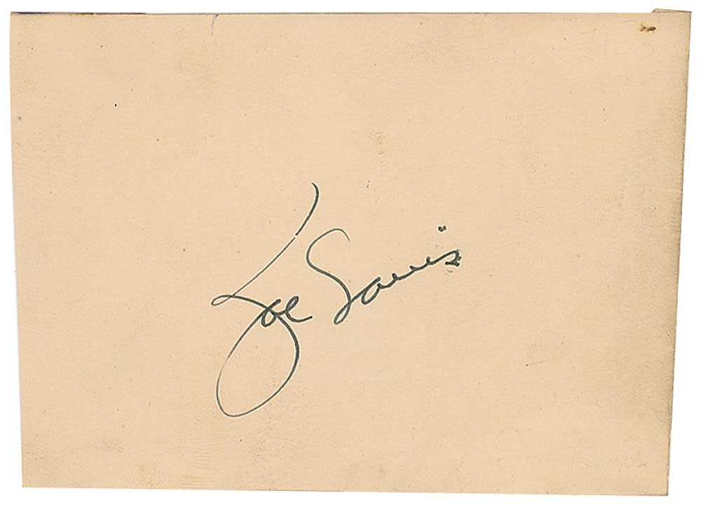 Vintage fountain pen signature, "Joe Louis,” on an off-white 4.5 x 3.25 sheet. In fine condition.