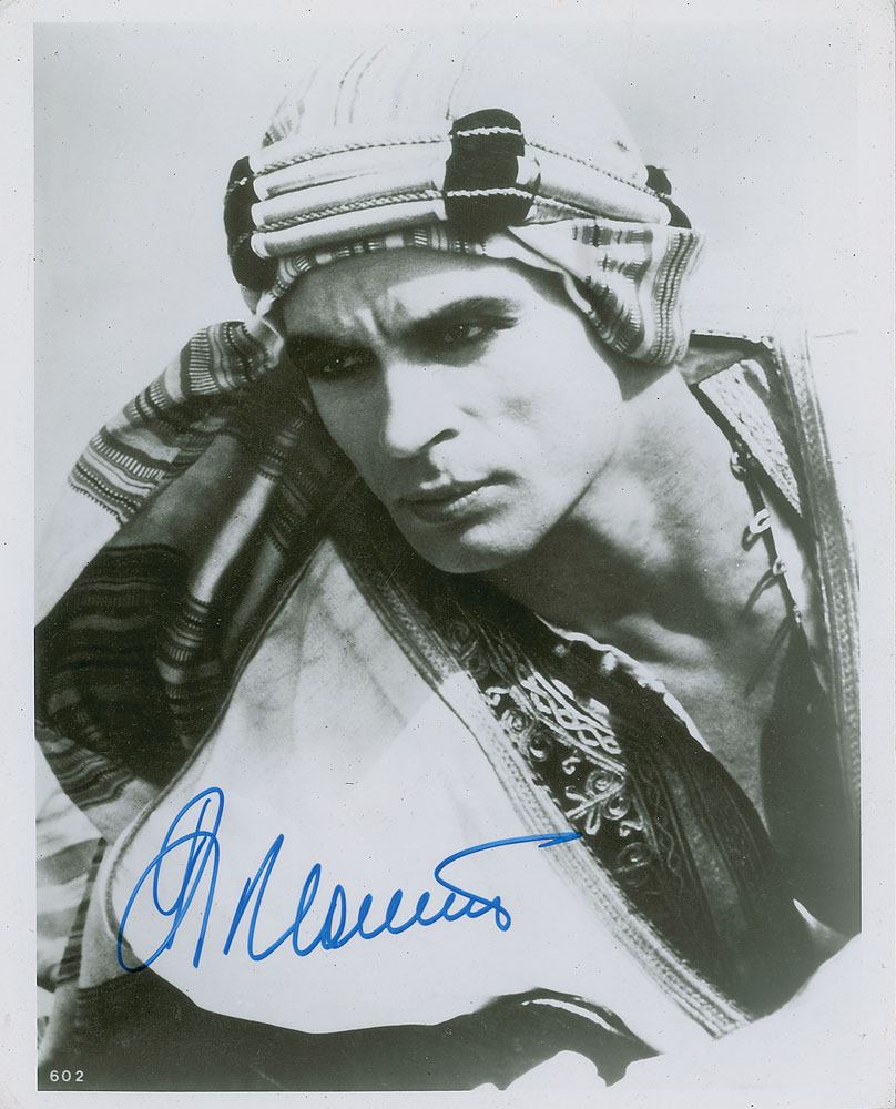 Glossy 8 x 10 photo of Nureyev in costume, signed in blue felt tip. In fine condition.