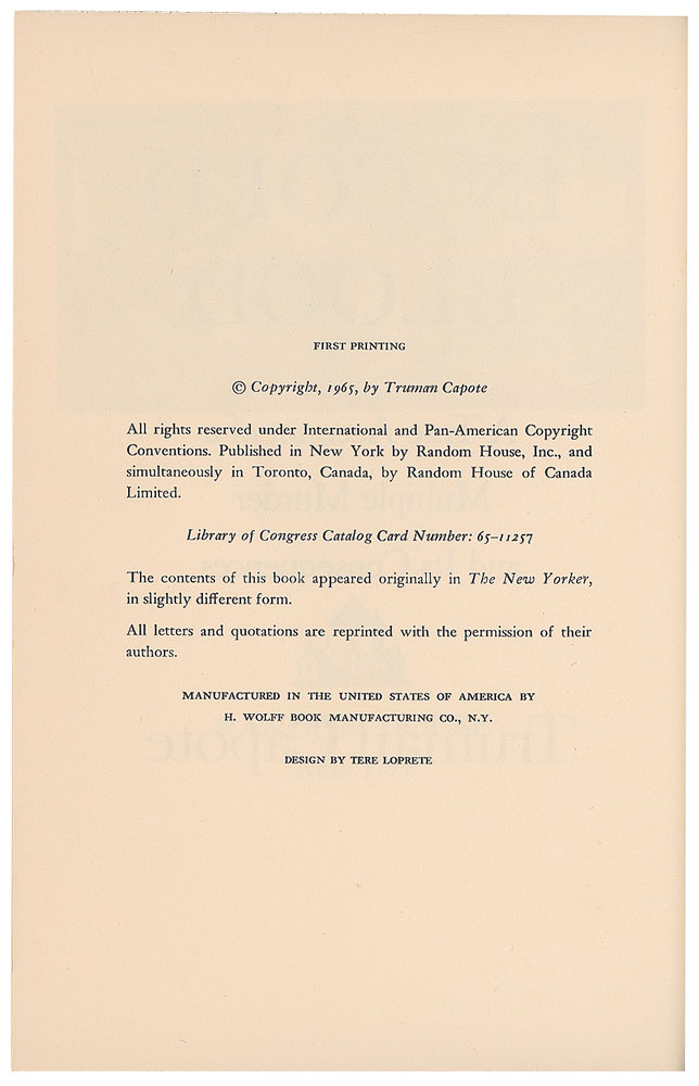 Signed first edition of Capote's true crime classic