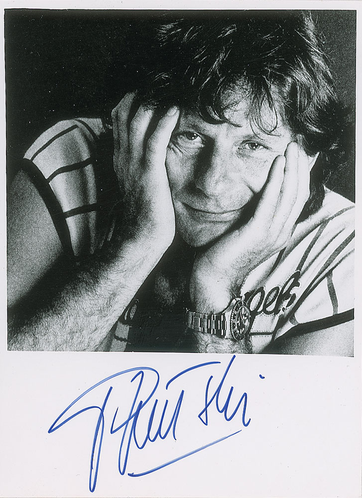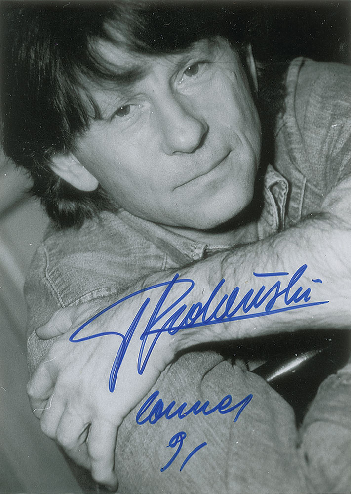 Two different glossy 5 x 7 photos of Polanski, each signed in blue felt tip by the director. In fine condition.