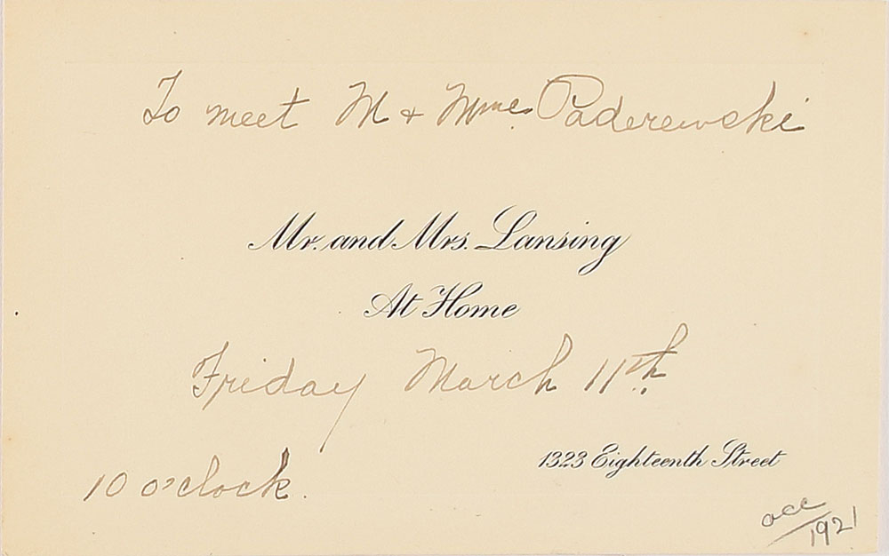 Stunning vintage matte-finish 7.5 x 9.5 Hartsook portrait of Paderewski affixed to its original 11 x 13.75 mount, crisply signed on the mount in black ink, "I. J. Paderewski." Affixed within its original presentation folder. In fine condition.