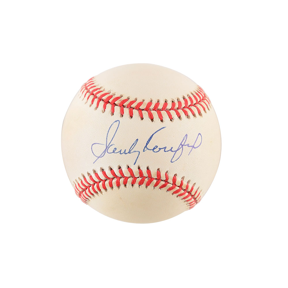 Official Rawlings National League (Coleman) baseball signed in blue ballpoint on the sweet spot by Sandy Koufax. In fine condition.