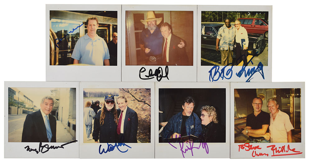 Desirable group lot of seven color glossy 4 x 4 Polaroid photos signed in felt tip by the pictured musical legend: Tony Bennett, Phil Collins (ins), Charlie Daniels, B. B. King, Kris Kristofferson, Willie Nelson, and Brian Wilson. Collector's notations to reverse of each photo date the signatures to between 1992 and 2004. In overall fine condition.