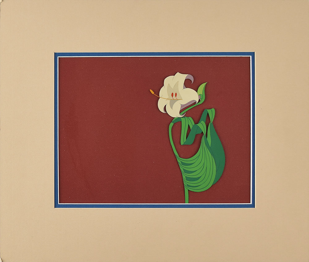 Despite initially earning lukewarm reviews, Alice in Wonderland has garnered a huge following as one of the more unusual, psychedelic, and atypical films of the Disney canon. The task of bringing the odd and anthropomorphic creatures of Lewis Carroll’s Alice stories to life was an essential first step for Walt Disney. But when the idea of emulating Sir John Tenniel’s original illustrations proved too difficult to animate, he chose the conceptual drawings of background artist Mary Blair to bring Wonderland to bold and vivid life. As a result, Alice’s encounters with Wonderland’s assortment of peculiar residents, both helpful and otherwise, raised the creative bar for all future Disney works, a challenge perhaps only matched by Tim Burton’s live-action adaptation from 2010. An unprecedented assemblage of production cels honoring one of Disney’s most original and influential films.