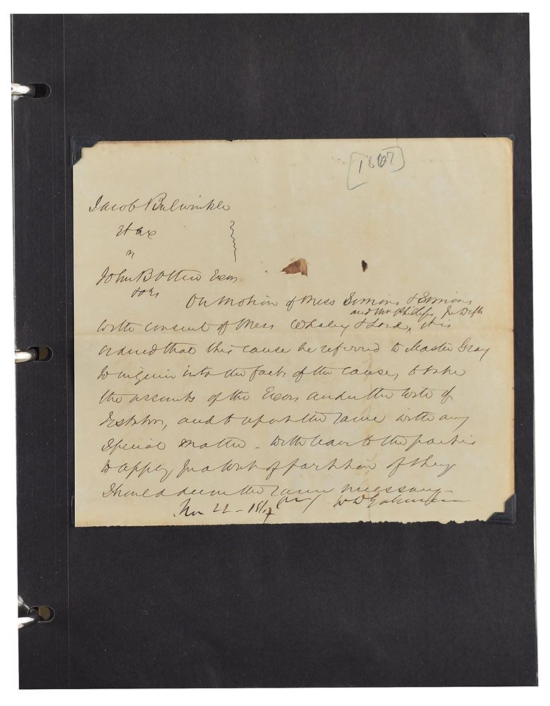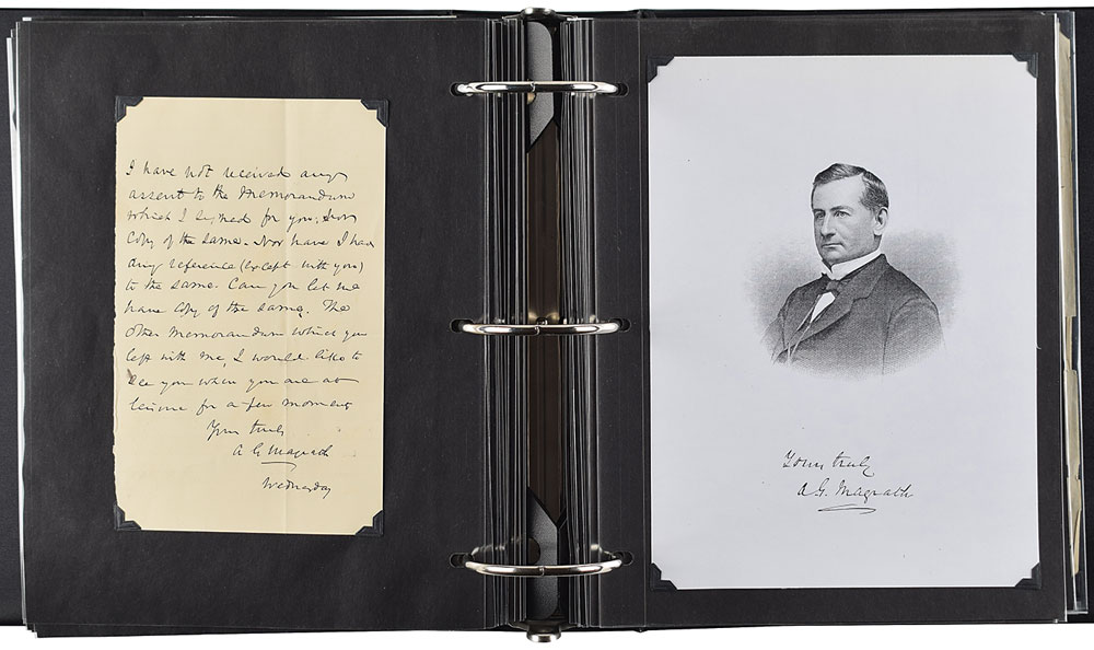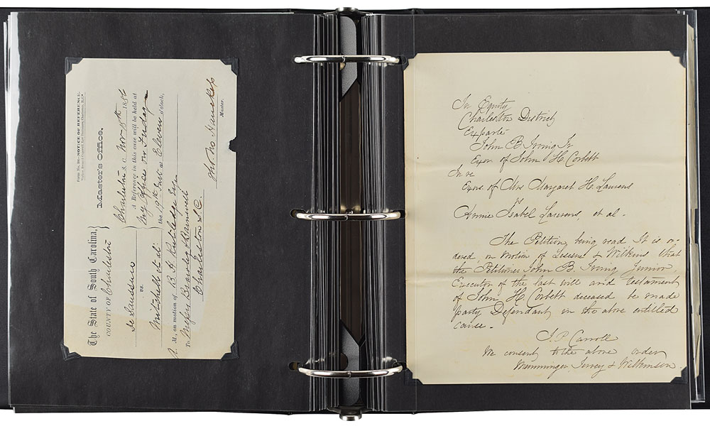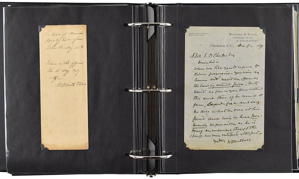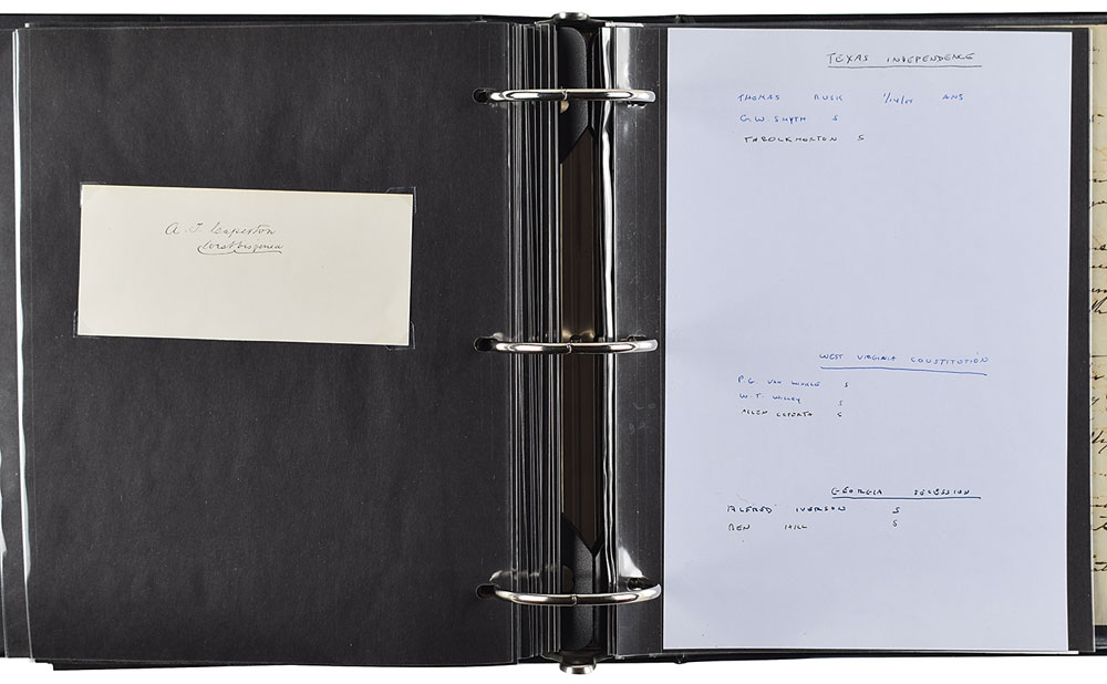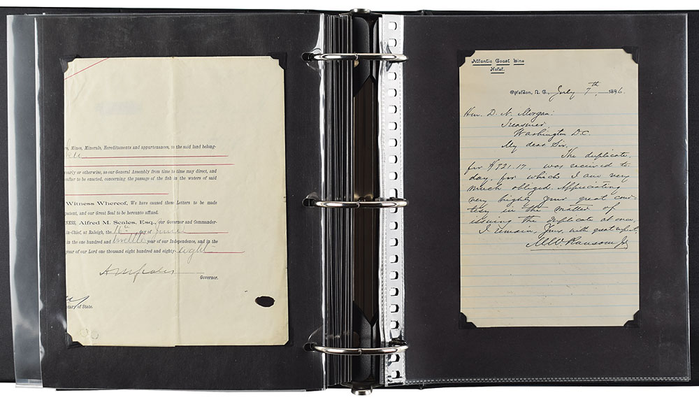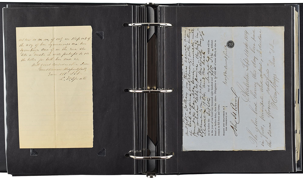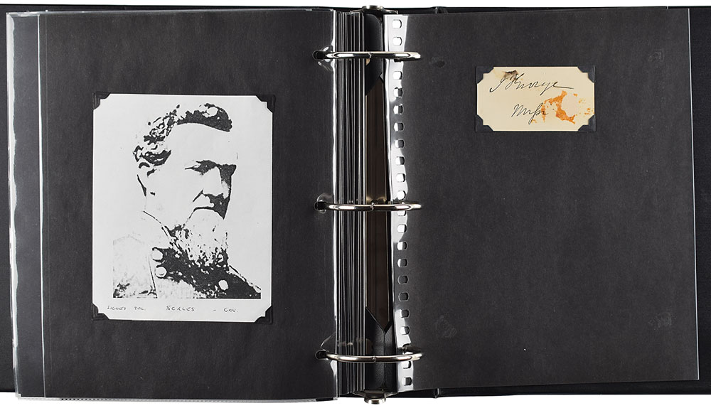 Highlights include: James Patton Anderson (signature), Thomas S. Bocock (signature), William Waters Boyce (ALS), John C. Breckinridge (signature), Walker Brooke (signature), Martin Jenkins Crawford (ALS), George Davis (ALS), W. P. Harris (signature), John Hemphill (signature), Robert M. T. Hunter (ALS), Robert M. T. Hunter (free frank), Laurence M. Keitt (signature), Stephen R. Mallory (DS), John L. Manning (ADS), Christopher Memminger (DS and LS), John Henninger Reagan (SP), James A. Seddon (ANS), John Gill Shorter (DS), Alexander H. Stephens (two ADSs, ANS, and check), Robert Toombs (ALS, free frank, and signed CDV), George Trenholm (ADS), LeRoy Pope Walker (ALS), and Thomas H. Watts (AES).