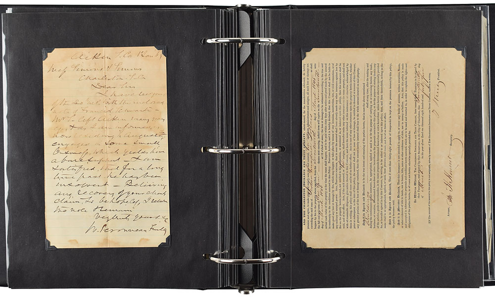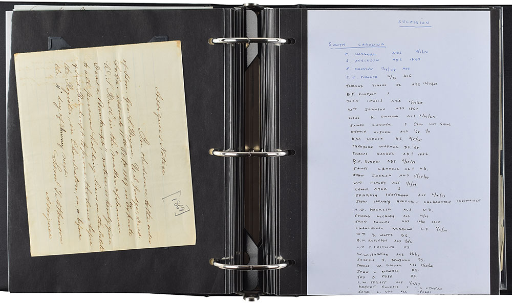 Substantial collection of more than 60 items signed by figures associated with the Confederate States of America, including members of the Confederate States government, the Confederate States Congress, state governments, and signers of secession ordinances.
