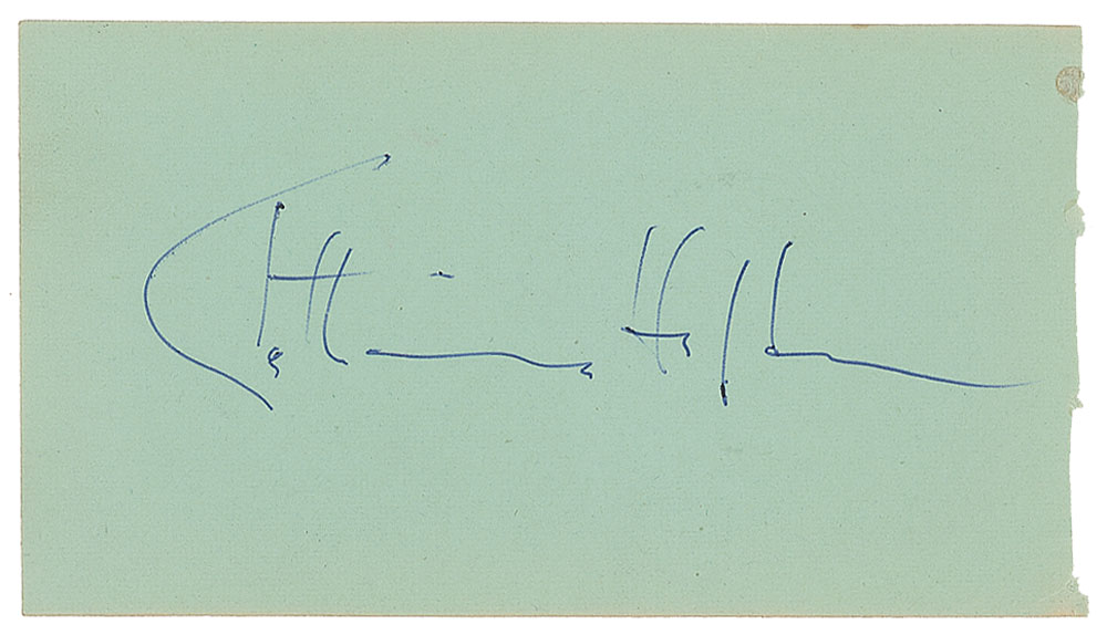 Vintage ballpoint signature, "Katharine Hepburn,” on a light green 5.25 x 3 slip. In fine condition.