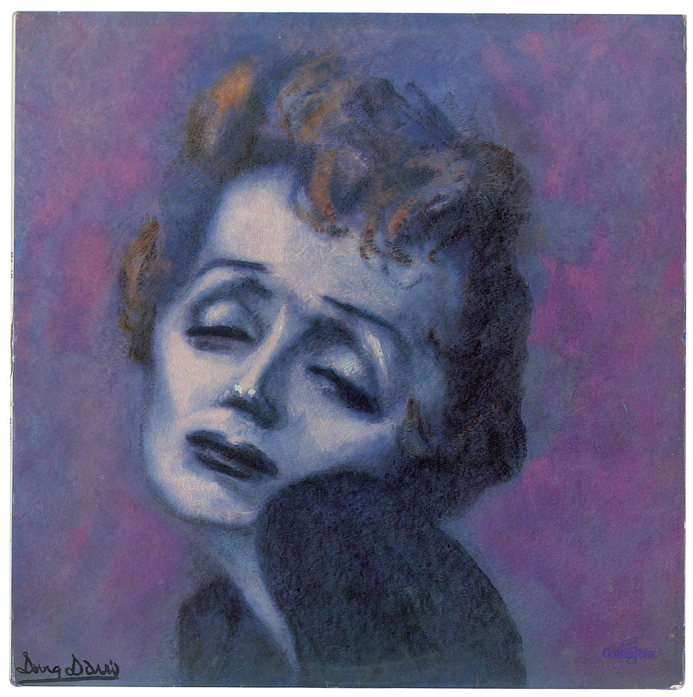 Ballpoint signature, "Edith Piaf,” on a pink-and-white 3.25 x 1.75 souvenir record sticker from "Le Nouvel Olympia Panoramique?votre Music-Hall!," which is affixed to the back cover of the Edith Piaf live album, Recital 1961. In fine condition. The record is included.