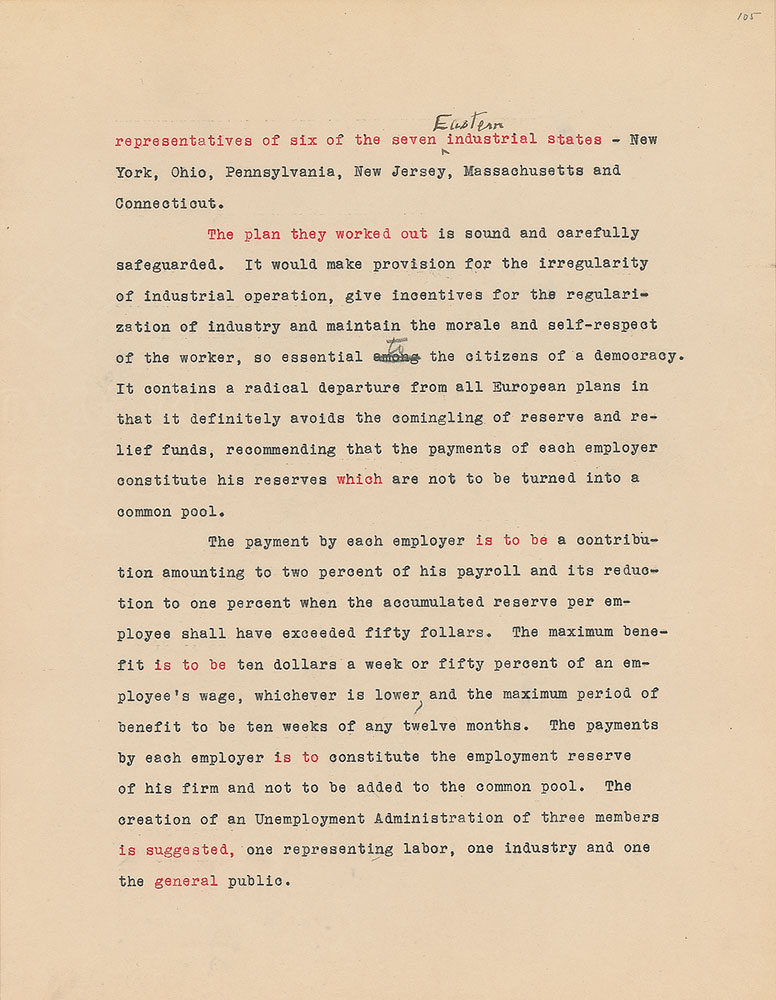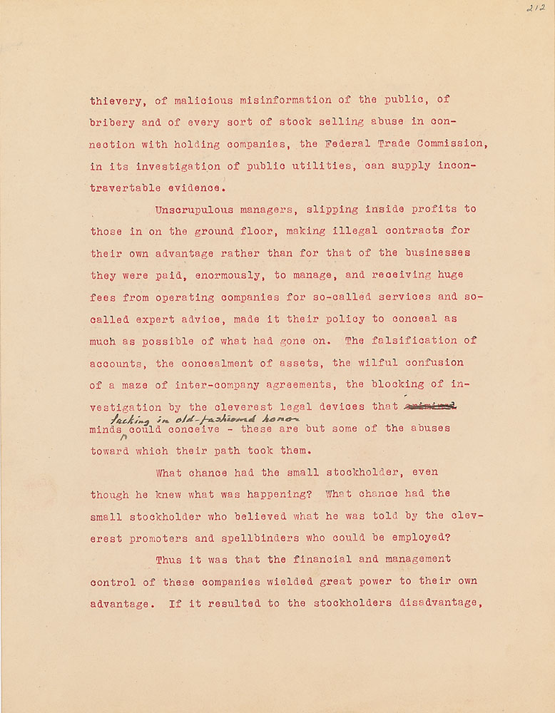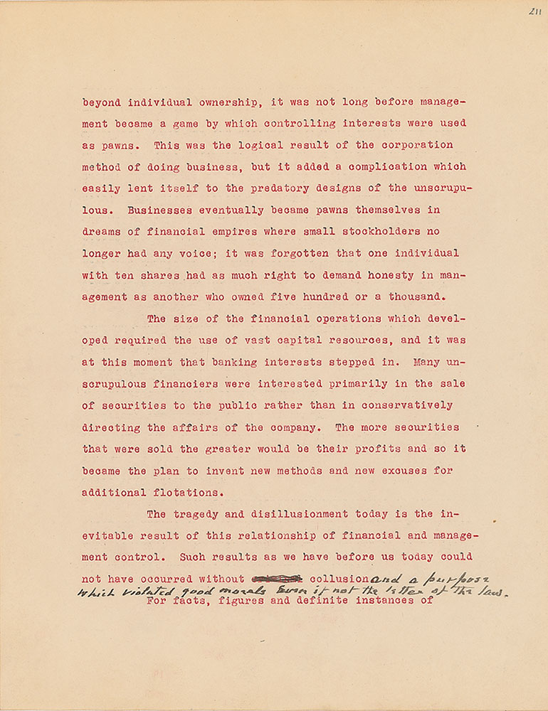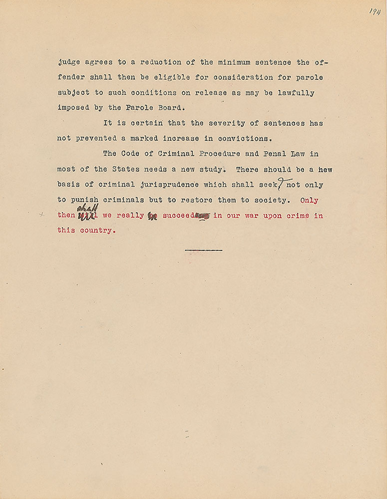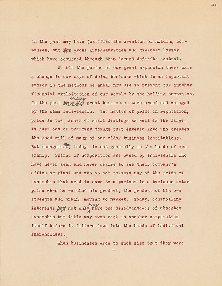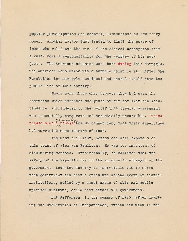 Roosevelt prepared this manuscript—outlining his progressive vision for America's 'New Deal'—while president-elect in 1933, drawing from various speeches and writings crafted during his candidacy. It was published in the month of his inauguration, March 1933, and quickly became a New York Times bestseller. With chapter headings like "Reappraisal of Values," "Need for Economic Planning," "Reorganization of Government," "Expenditure and Taxation," "The Power Issue," "Banking and Speculation," and "National and International Unity," the soon-to-be president lays out his plans for the country. An important hand-corrected manuscript from the revered head of state. From the Collection of Dr. Lawrence E. Miller.