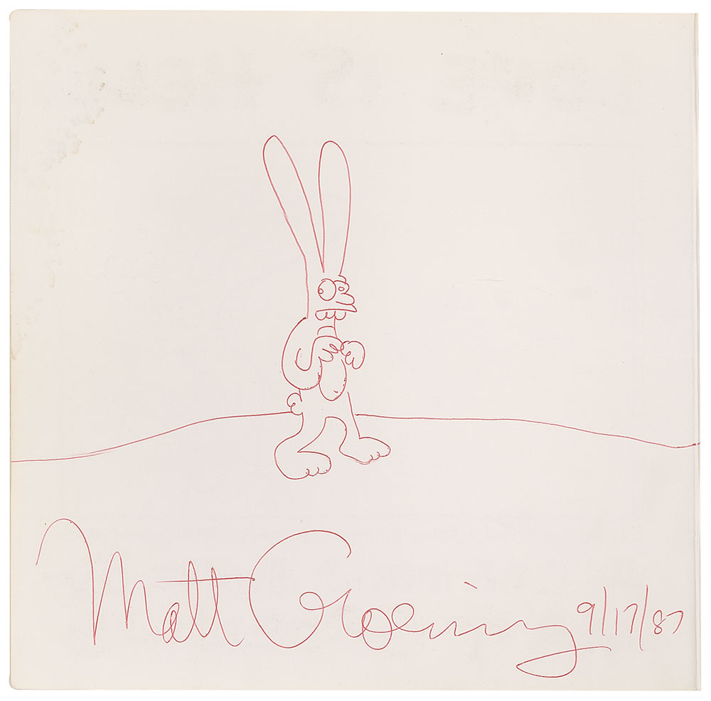 This delightfully early sketch of Binky, the main character in Groening's celebrated Life in Hell comic strip, was drawn at a most significant time in the artist's career—at this juncture, the Simpson family were poised to begin their second season on The Tracey Ullman Show, and were still over two years away from making their Fox network debut on December 17, 1989. Drawn in his first published book, this marks the earliest Groening sketch that we have ever offered.