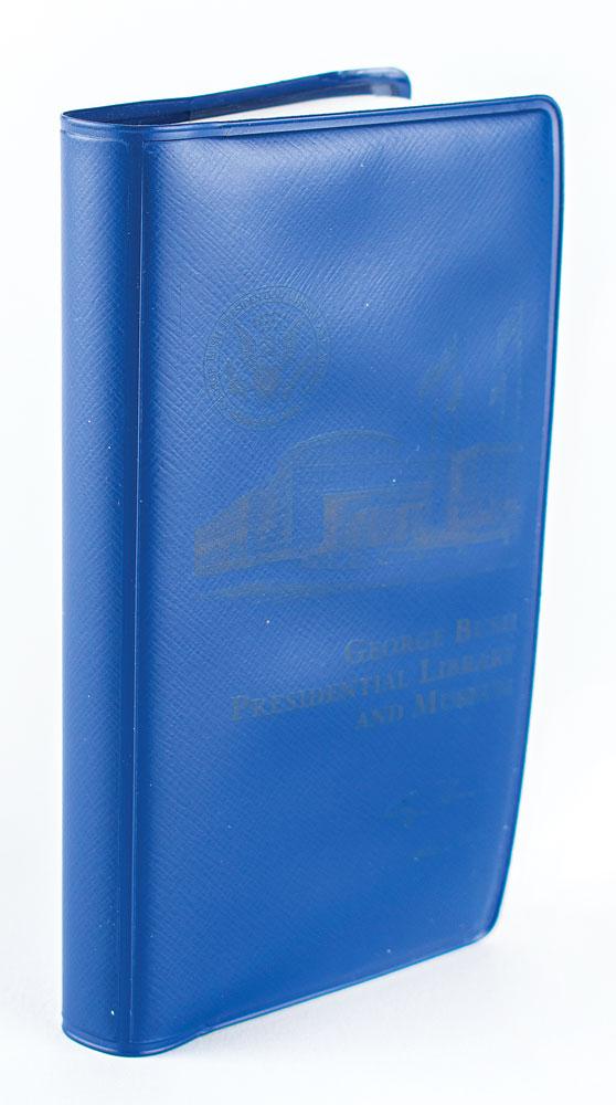 Signed book: Random House Webster's Pocket American Dictionary. First edition. NY: Random House, 1998. Softcover with blue plastic George Bush Presidential Library and Museum dust jacket, 2.75 x 5.25, 376 pages. Signed on the title page in black ink by George Bush, and in blue ink by Barbara Bush. In fine condition.