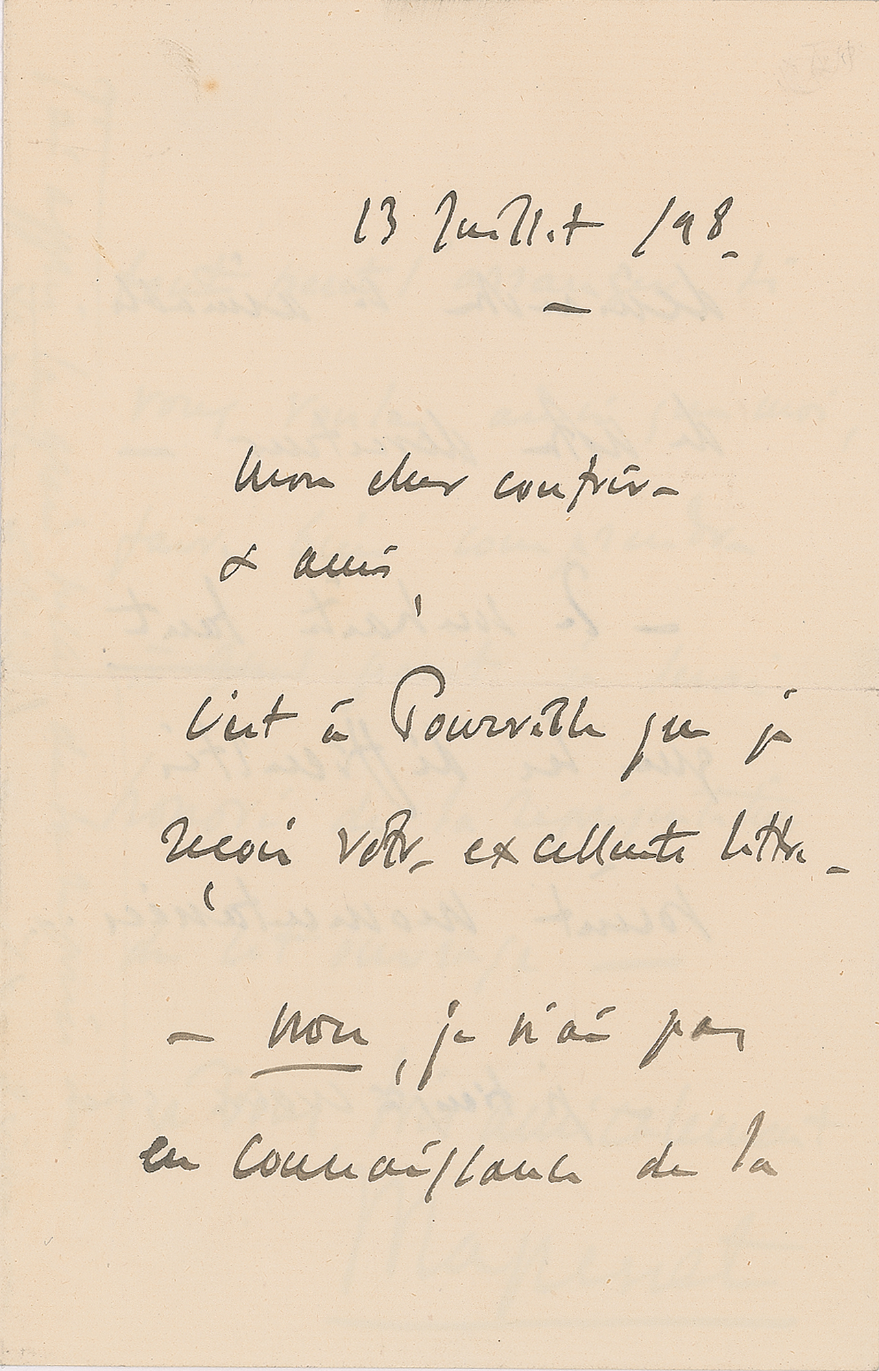 French composer (1842-1912) best known for such operas as 'Manon,' 'Werther,' and 'Thais.' Untranslated ALS in French, signed “Massenet,” three pages on two adjoining sheets, 4.5 x 7, July 13, 1898. In fine condition.