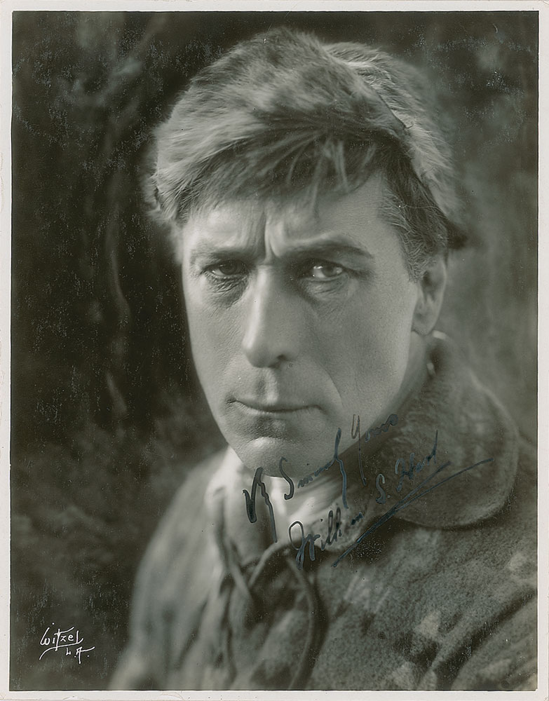 Two vintage 7.5 x 9.5 photos signed by William S. Hart by the Witzel Studio of Los Angeles: a silver gelatin close-up photo of Hart looking stern, signed in dark fountain pen, "Sincerely yours, William S. Hart"; and a matte-finish photo of Hart with two drawn pistols, signed and inscribed in white ink, "For Rosemary Hardy, with best wishes of Bill Hart." Reverse of latter photo bears a "Wm. S. Hart Productions" copyright stamp dated to 1918. In overall fine condition.